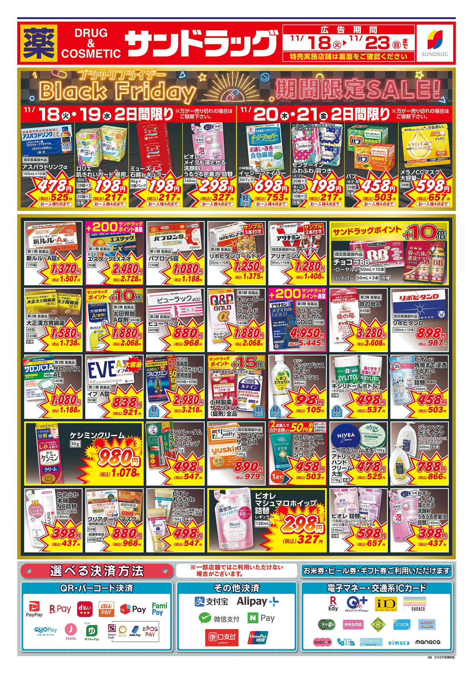 | 店舗でご利用いただける支払方法 |