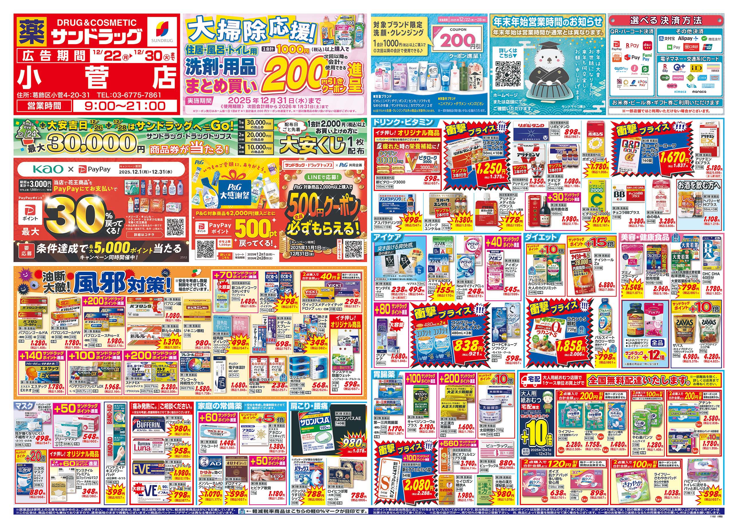 ・閉店前は店頭商品を店内に収納する為、通路が狭くなる場合がございます。