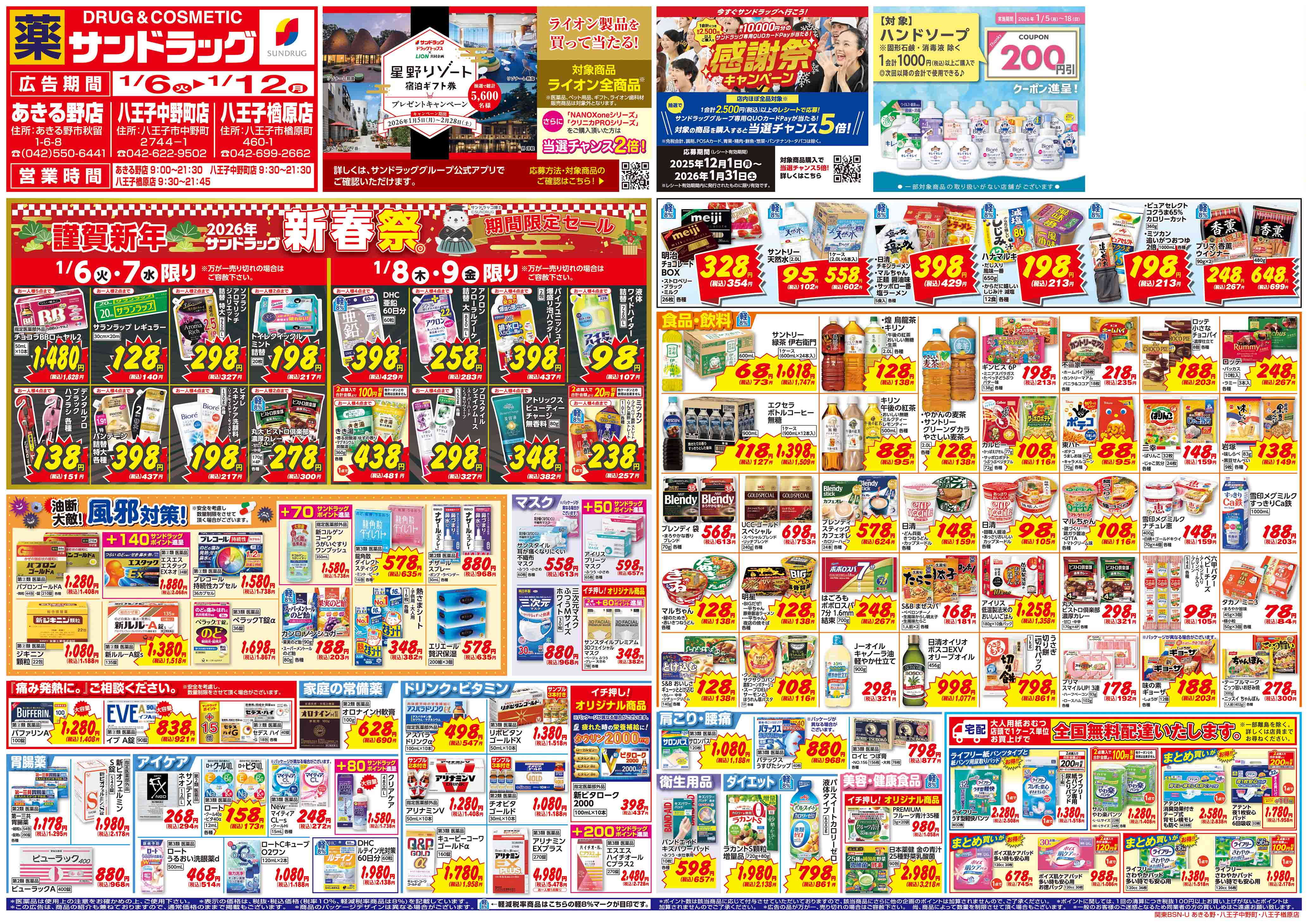 ・年末年始、または台風・大雪等の気象条件により営業時間を変更する場合がございます。