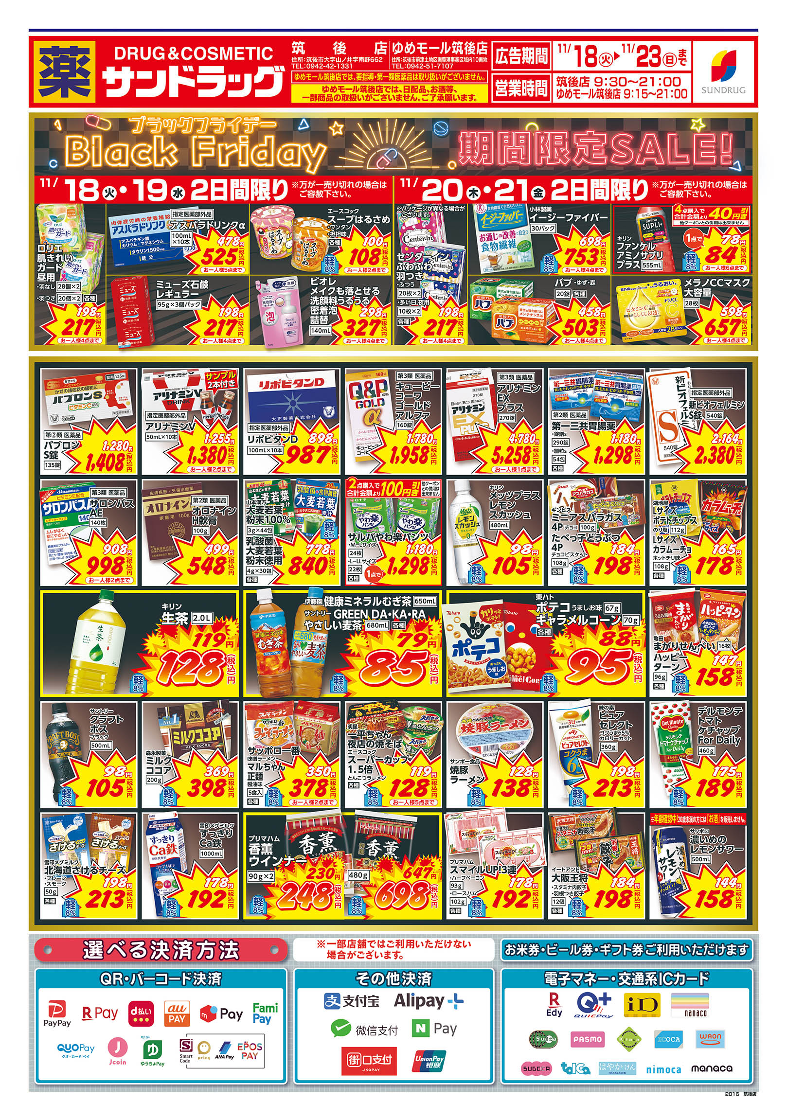 | 店舗でご利用いただける支払方法 |