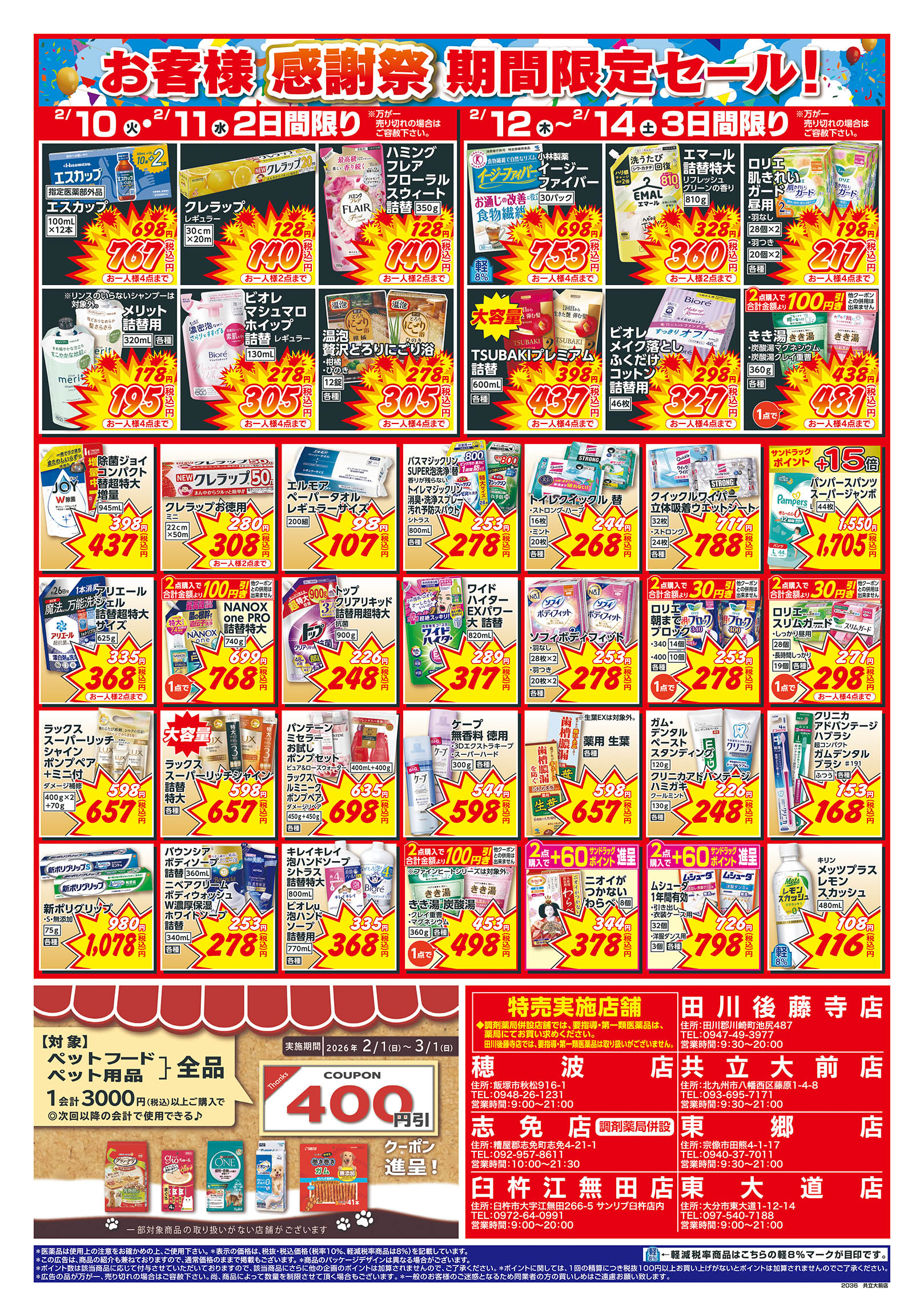 ・閉店前は店頭商品を店内に収納する為、通路が狭くなる場合がございます。