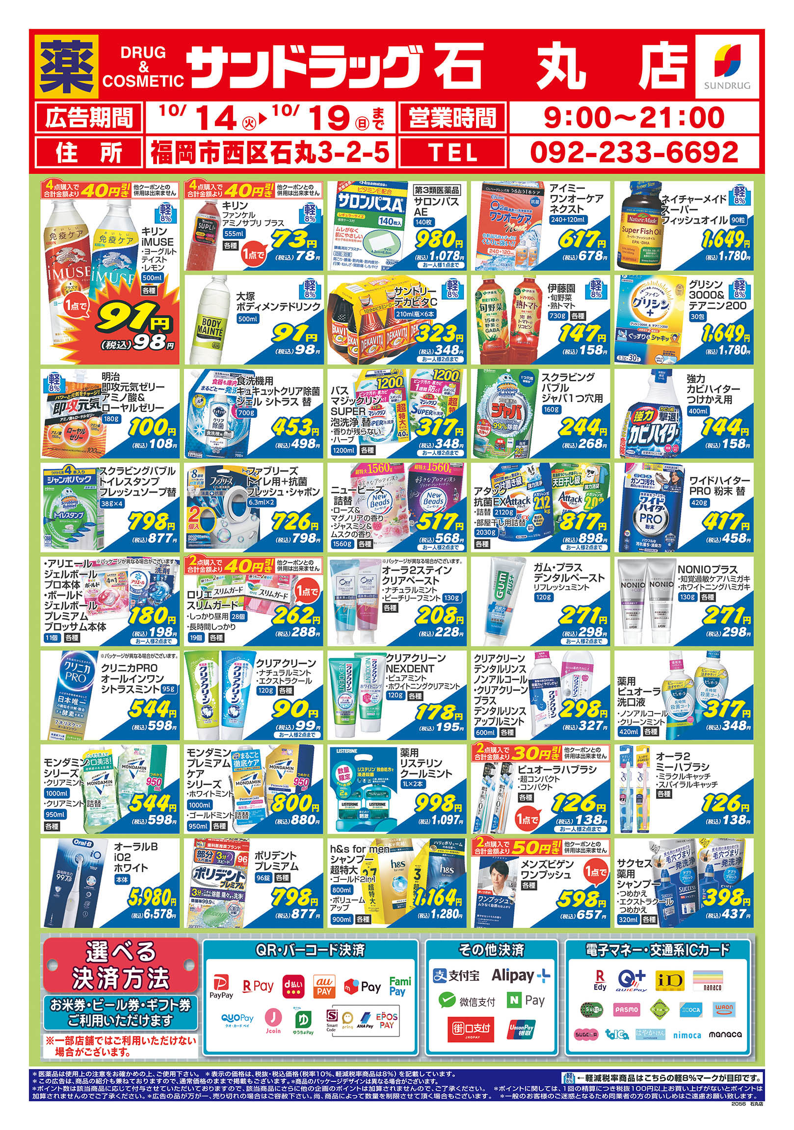 ・第一類医薬品は時間帯によって販売できない場合があります。・『駐車場設置店舗』には、駐車券発行店舗も含まれます。