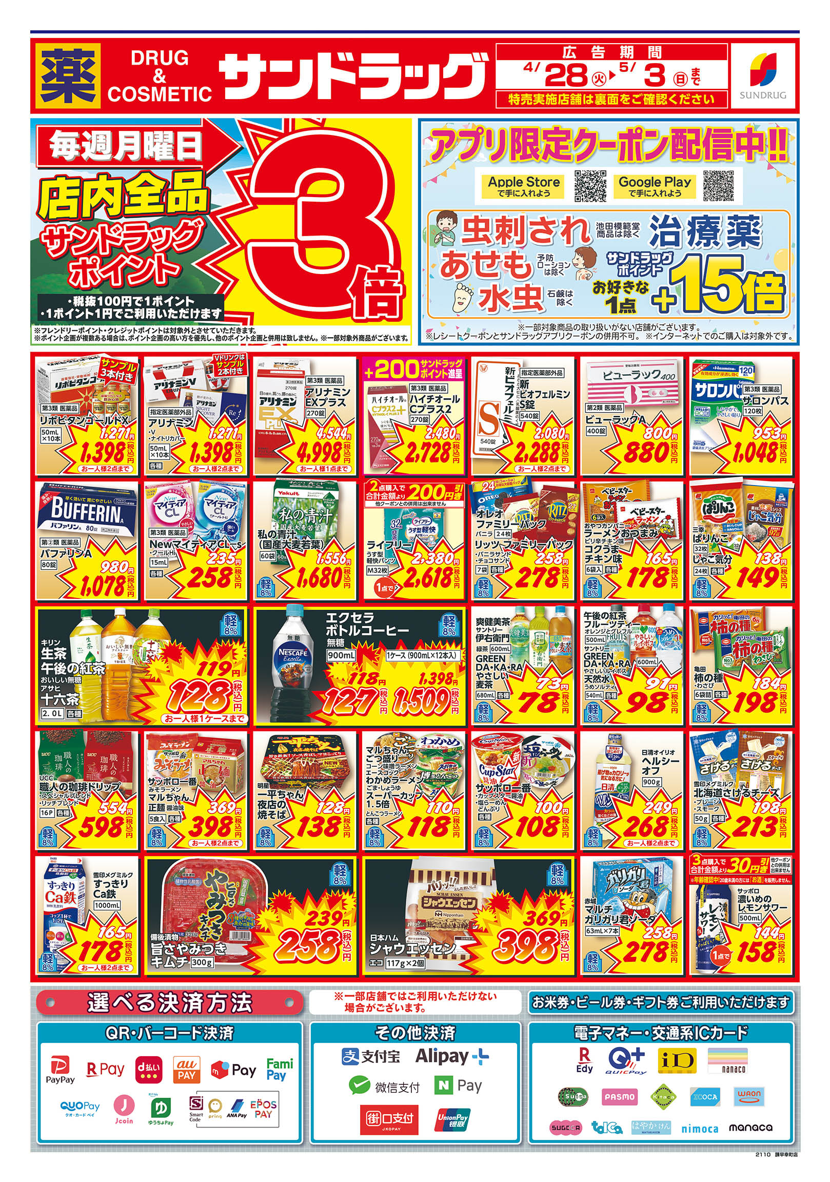| 店舗でご利用いただける支払方法 |