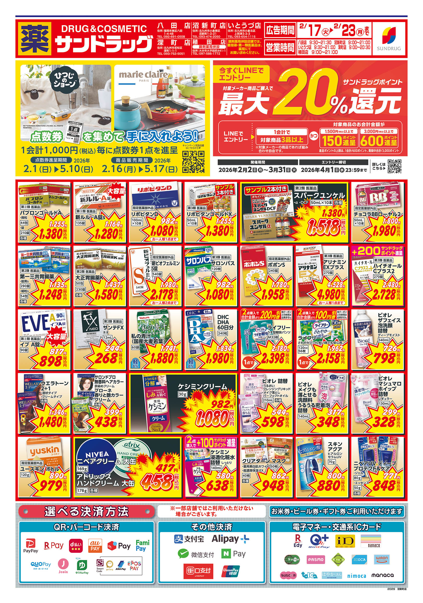 ・閉店前は店頭商品を店内に収納する為、通路が狭くなる場合がございます。