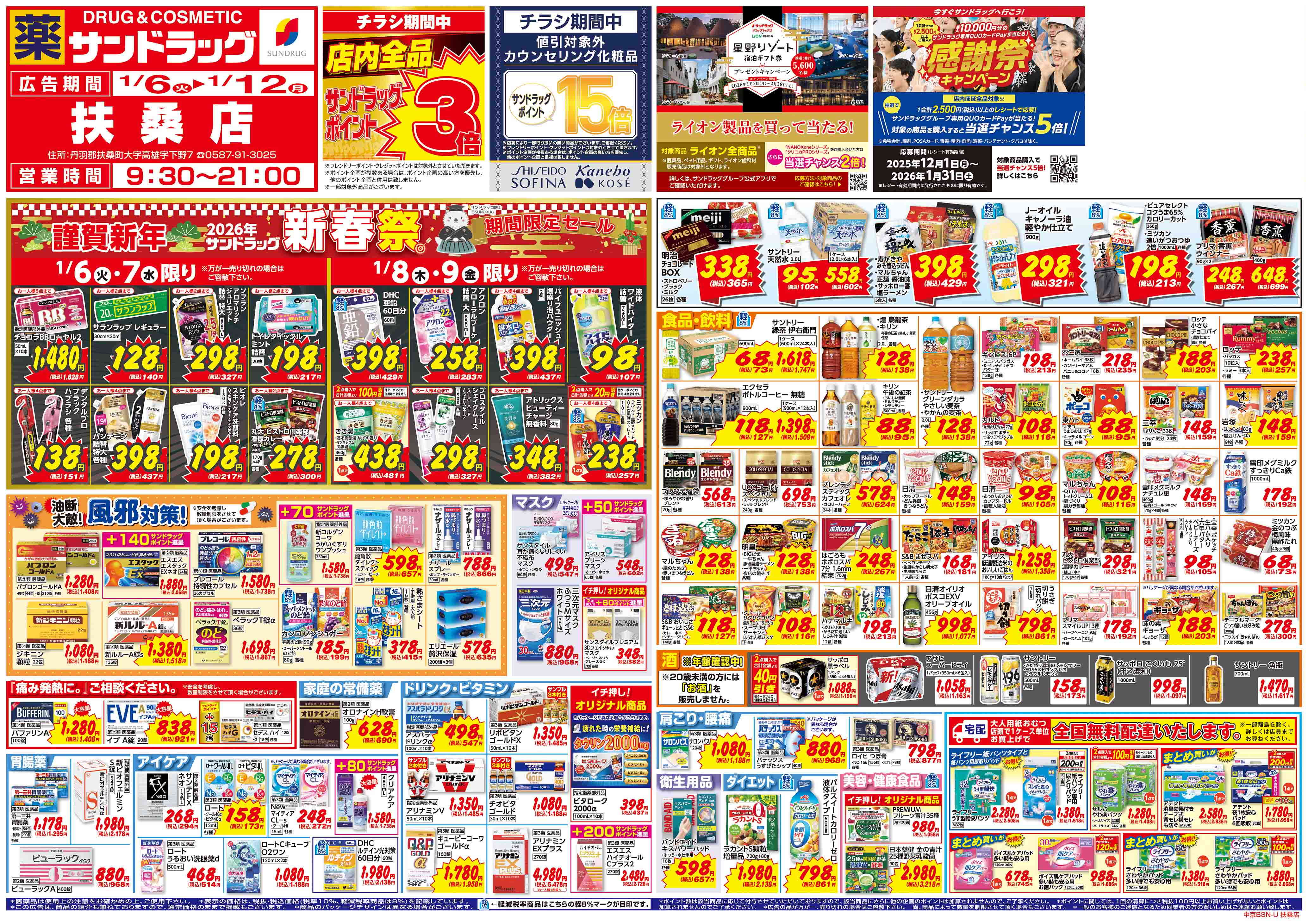・年末年始、または台風・大雪等の気象条件により営業時間を変更する場合がございます。