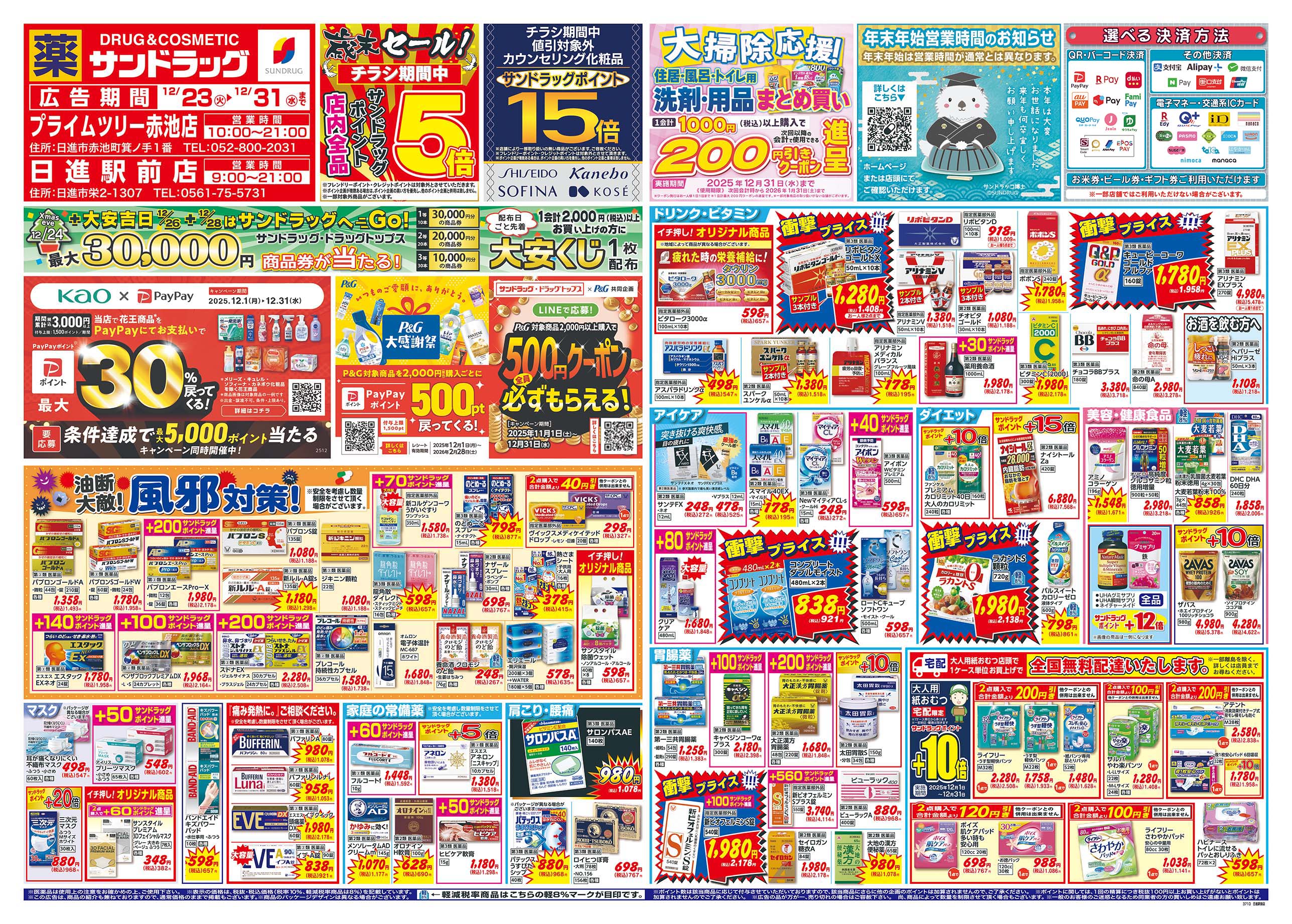 ・閉店前は店頭商品を店内に収納する為、通路が狭くなる場合がございます。