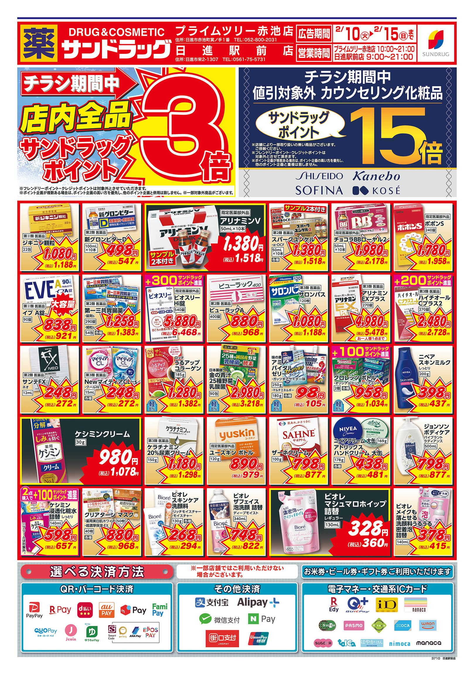 ・第一類医薬品は時間帯によって販売できない場合があります。