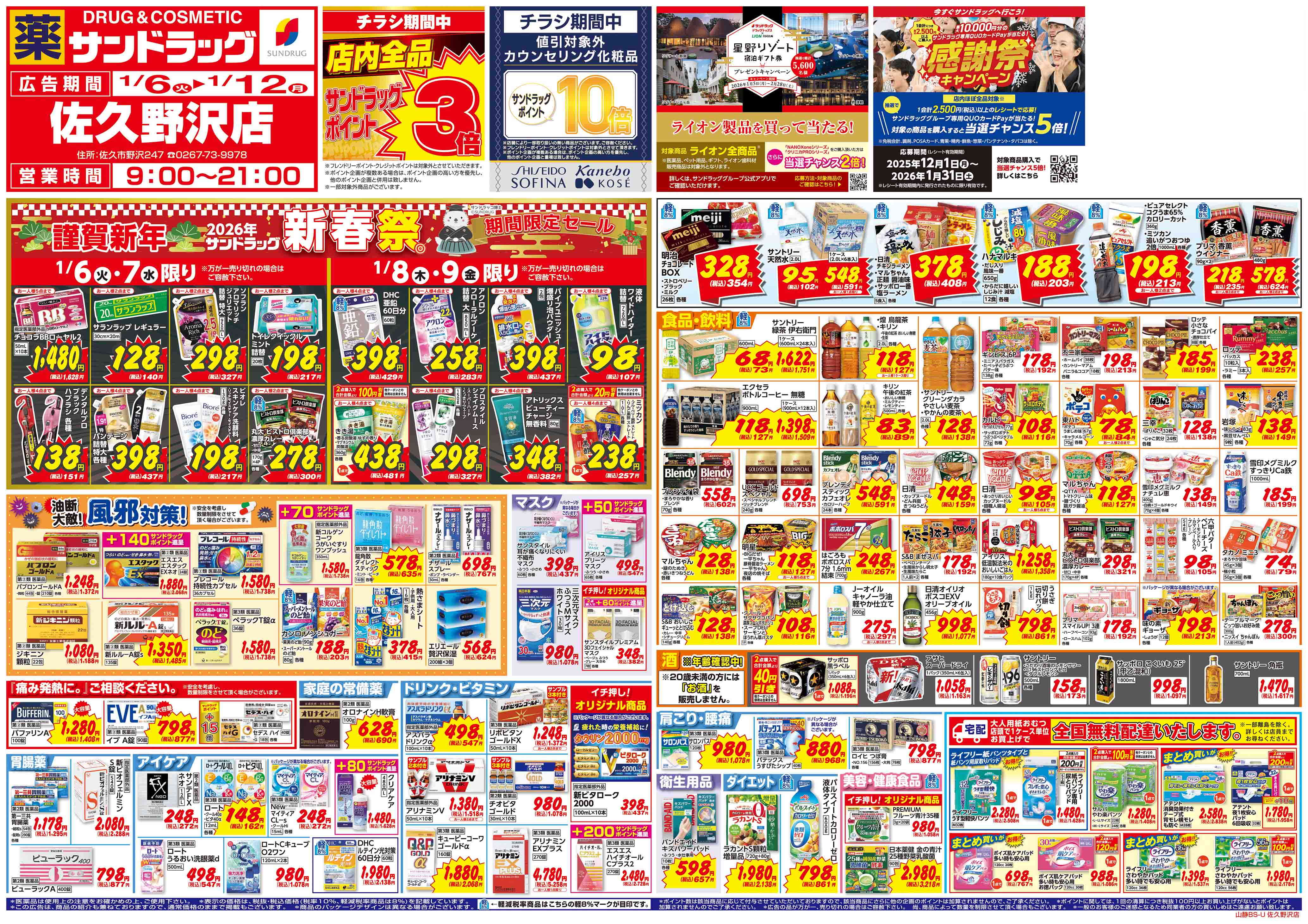 ・年末年始、または台風・大雪等の気象条件により営業時間を変更する場合がございます。