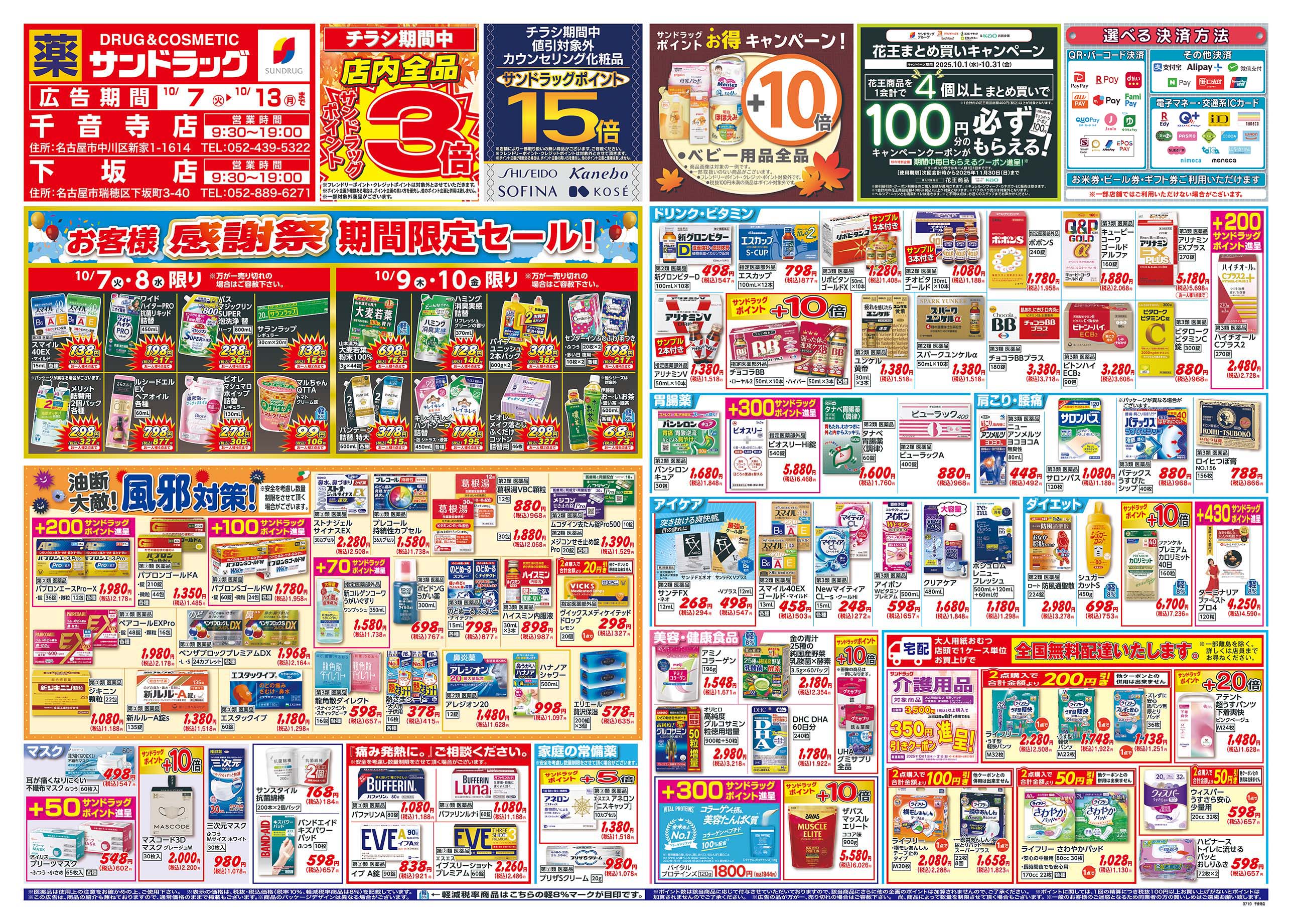 店舗でご利用いただける支払方法 |