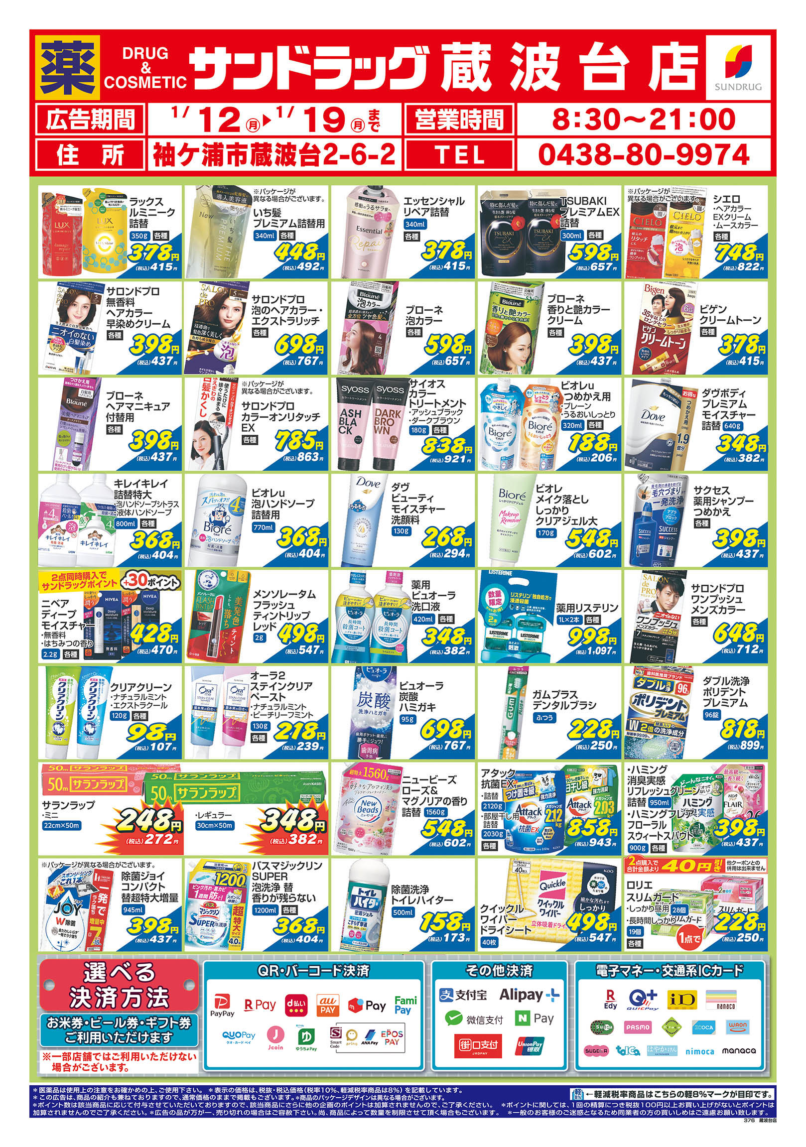 ・閉店前は店頭商品を店内に収納する為、通路が狭くなる場合がございます。