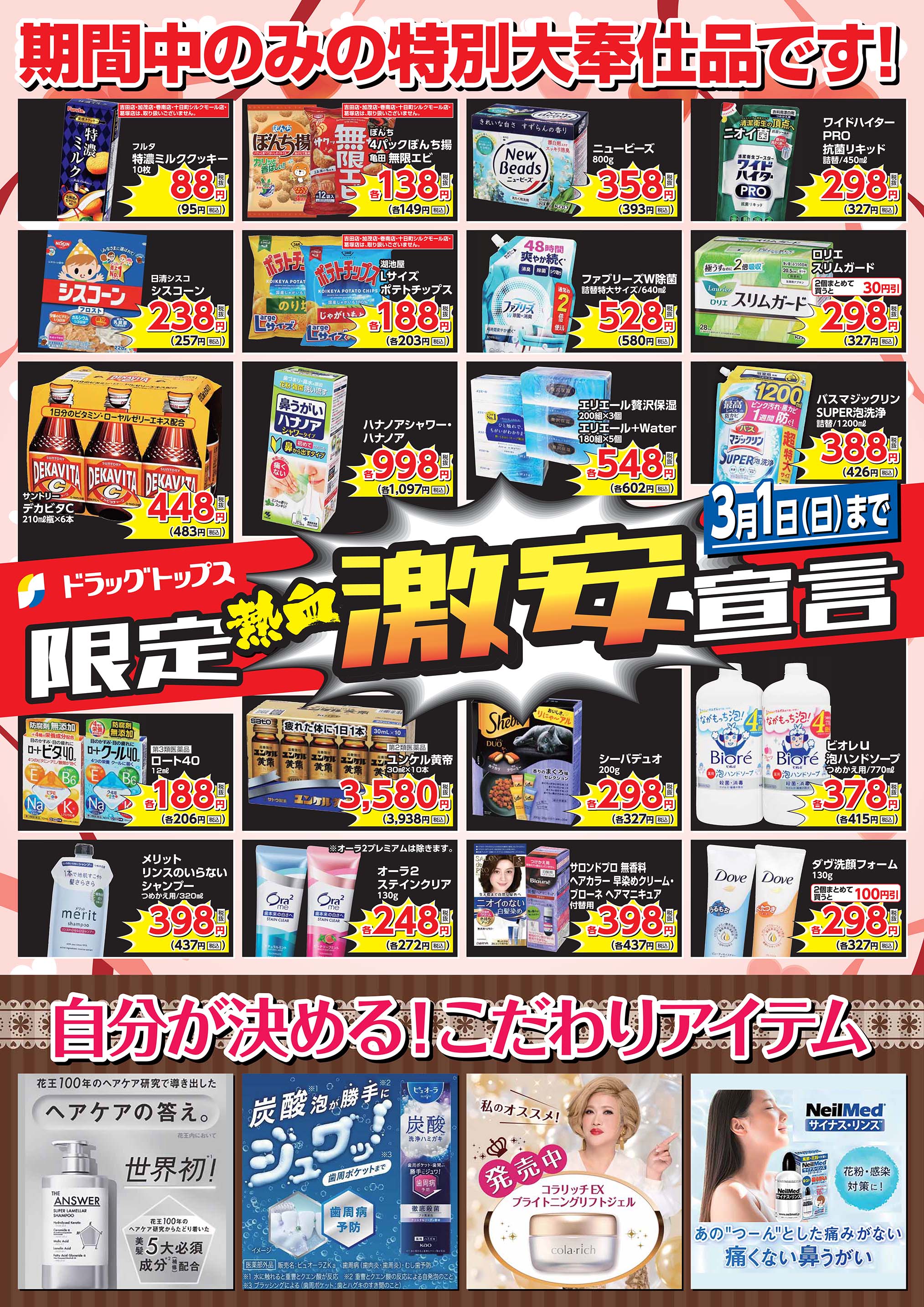 ・閉店前は店頭商品を店内に収納する為、通路が狭くなる場合がございます。