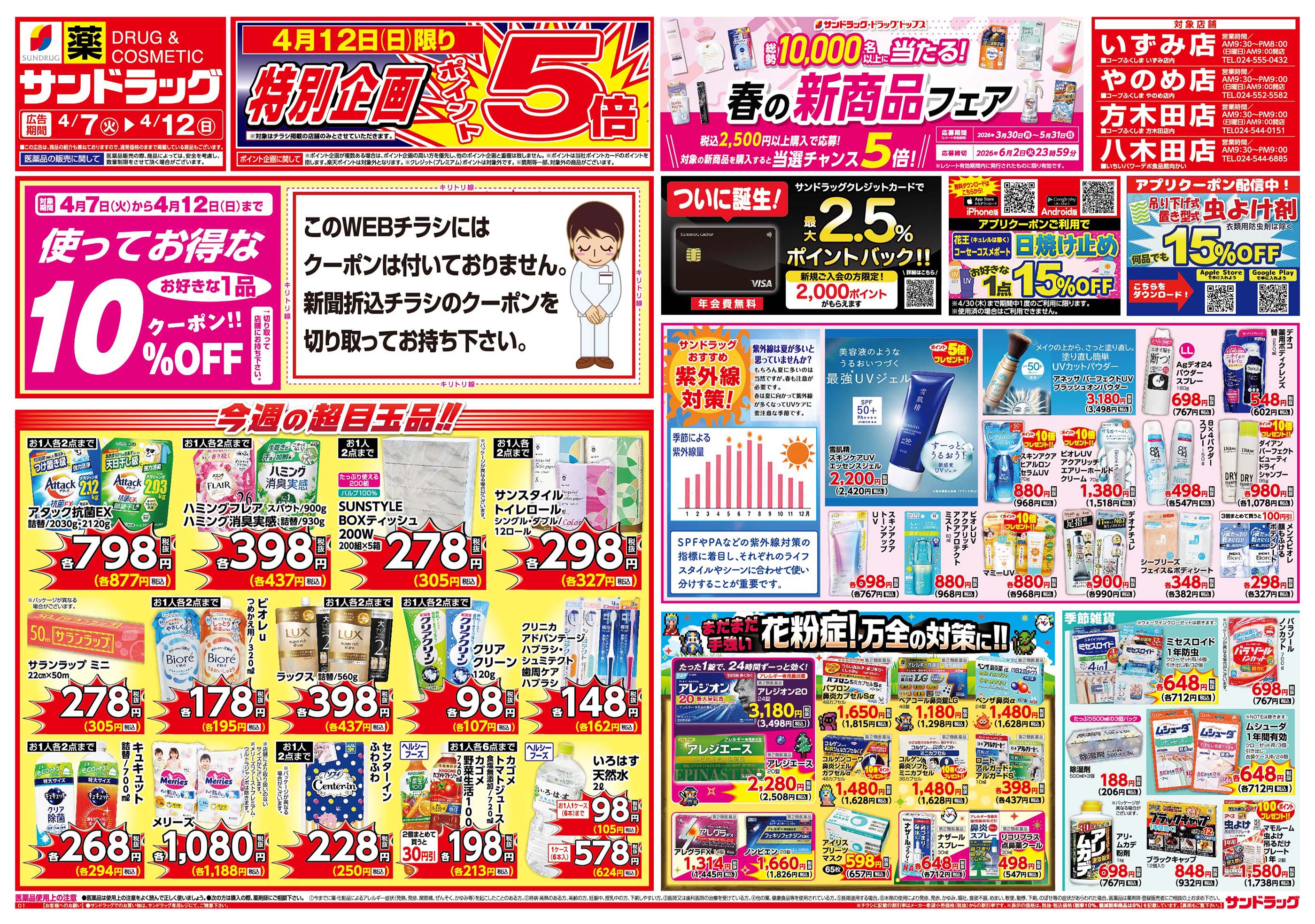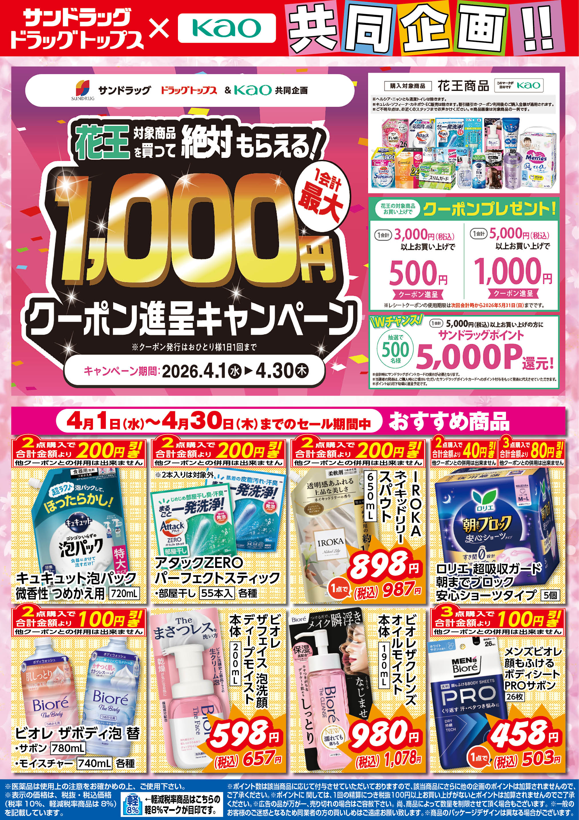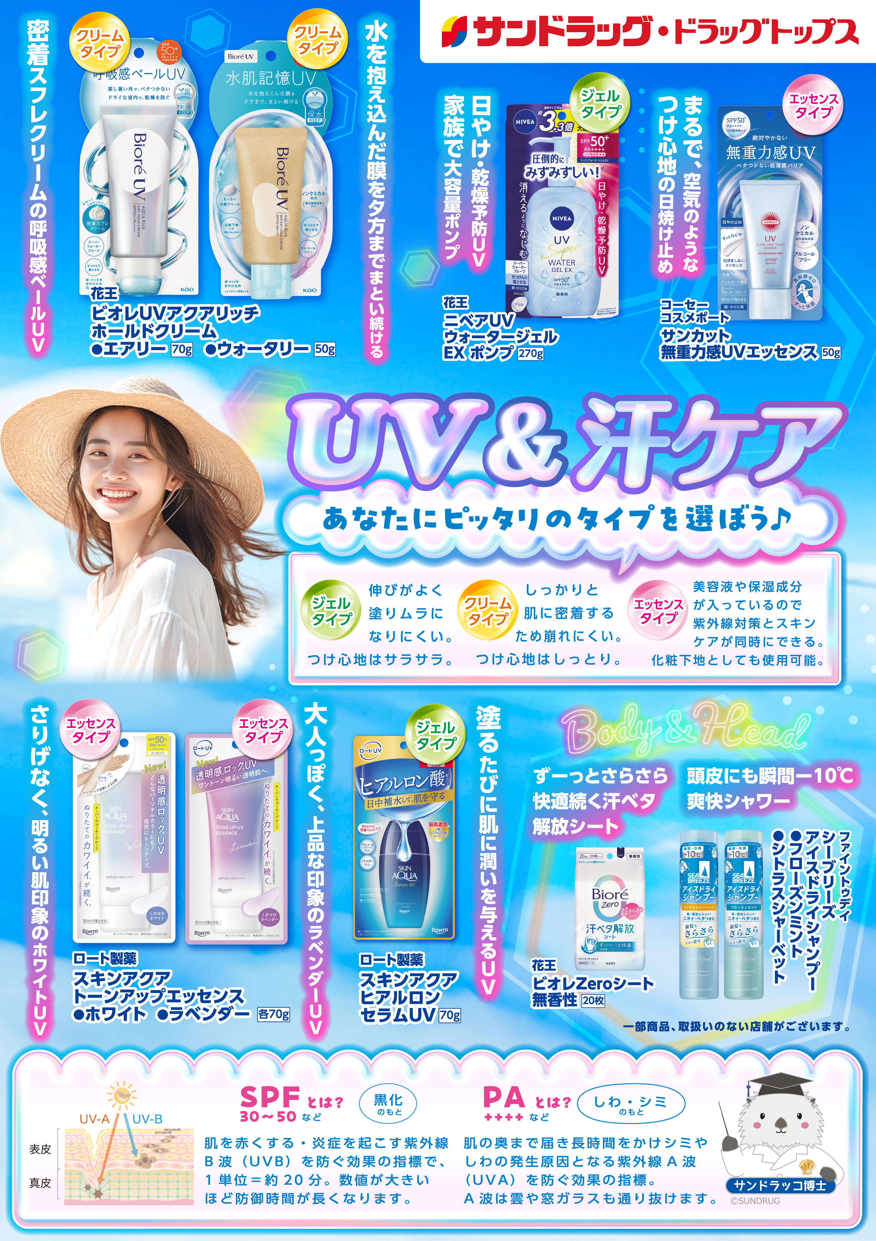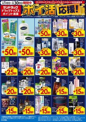 ・第一類医薬品は時間帯によって 販売できない場合があります。 ・『駐車場設置店舗』には、 駐車券発行店舗も含まれます。 ・年末年始、または台風・大雪等の 気象条件により営業時間を変更 する場合がございます。 ・閉店前は店頭商品を店内に収納 する為、通路が狭くなる場合が ございます。