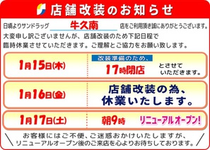 1月16日(金)は改装の為、お休みを頂いております。改装中は店舗受取のお引き取りができません。何卒ご了承下さいませ。