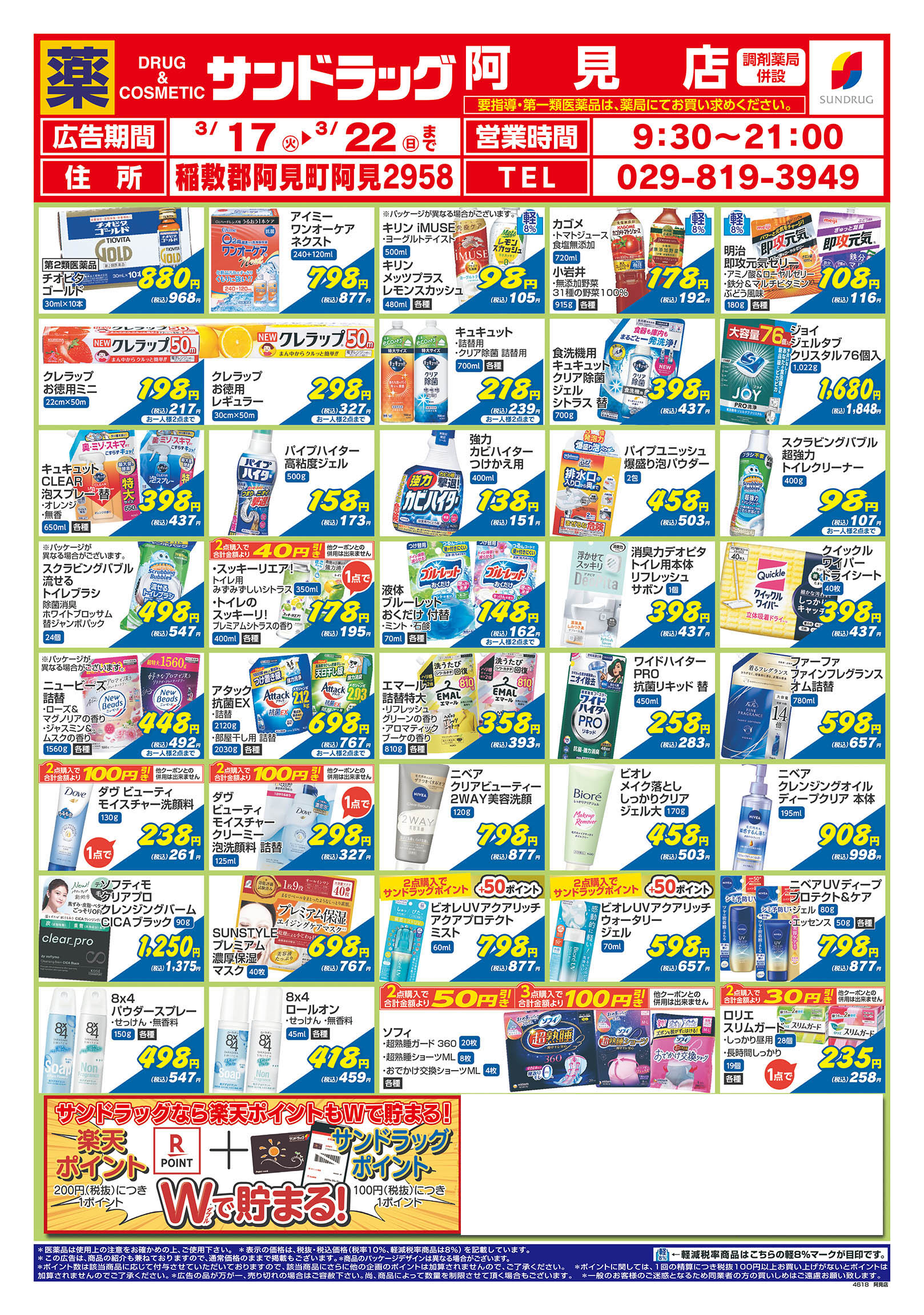 ・第一類医薬品は時間帯によって販売できない場合があります。