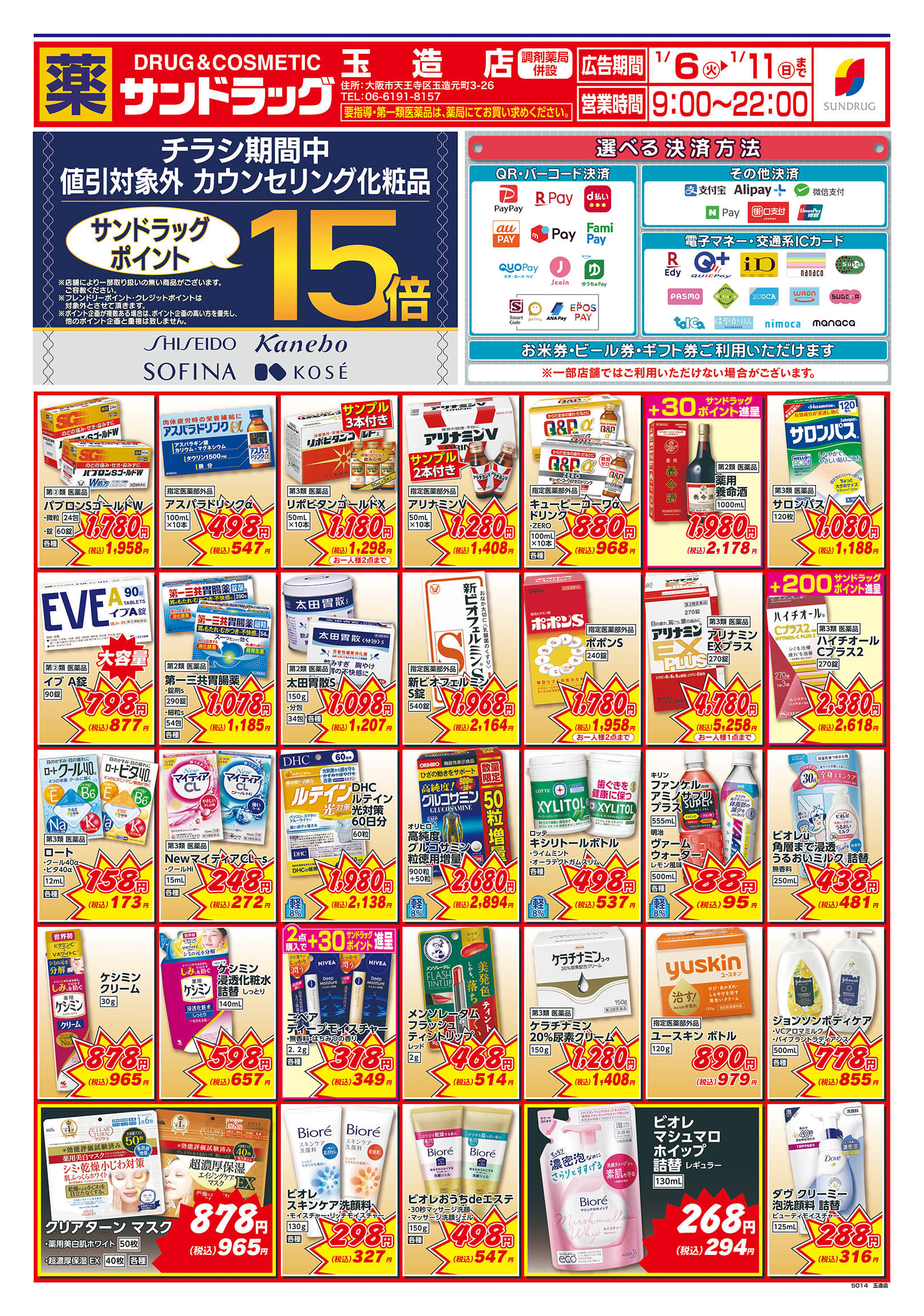 | 店舗でご利用いただける支払方法 |