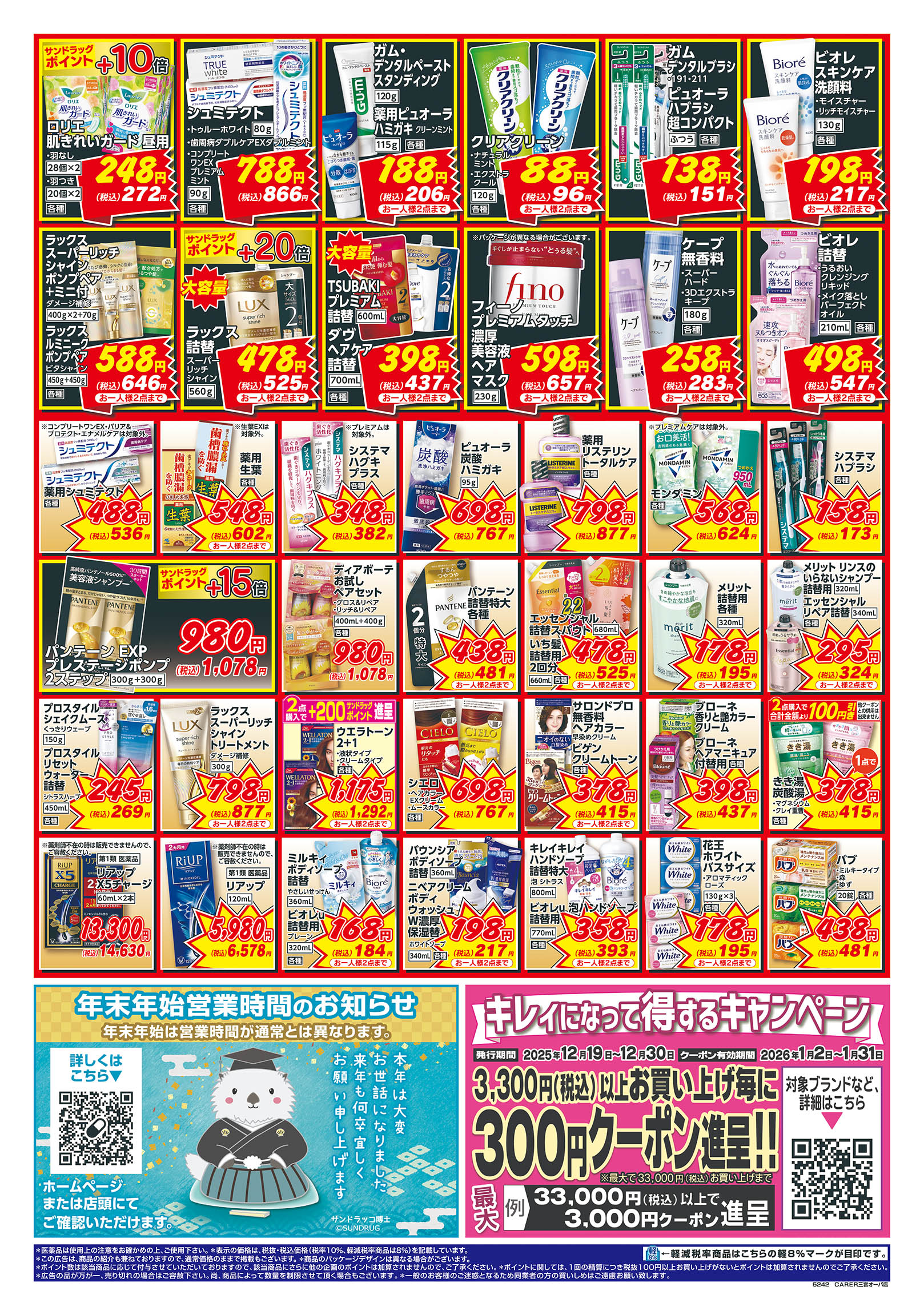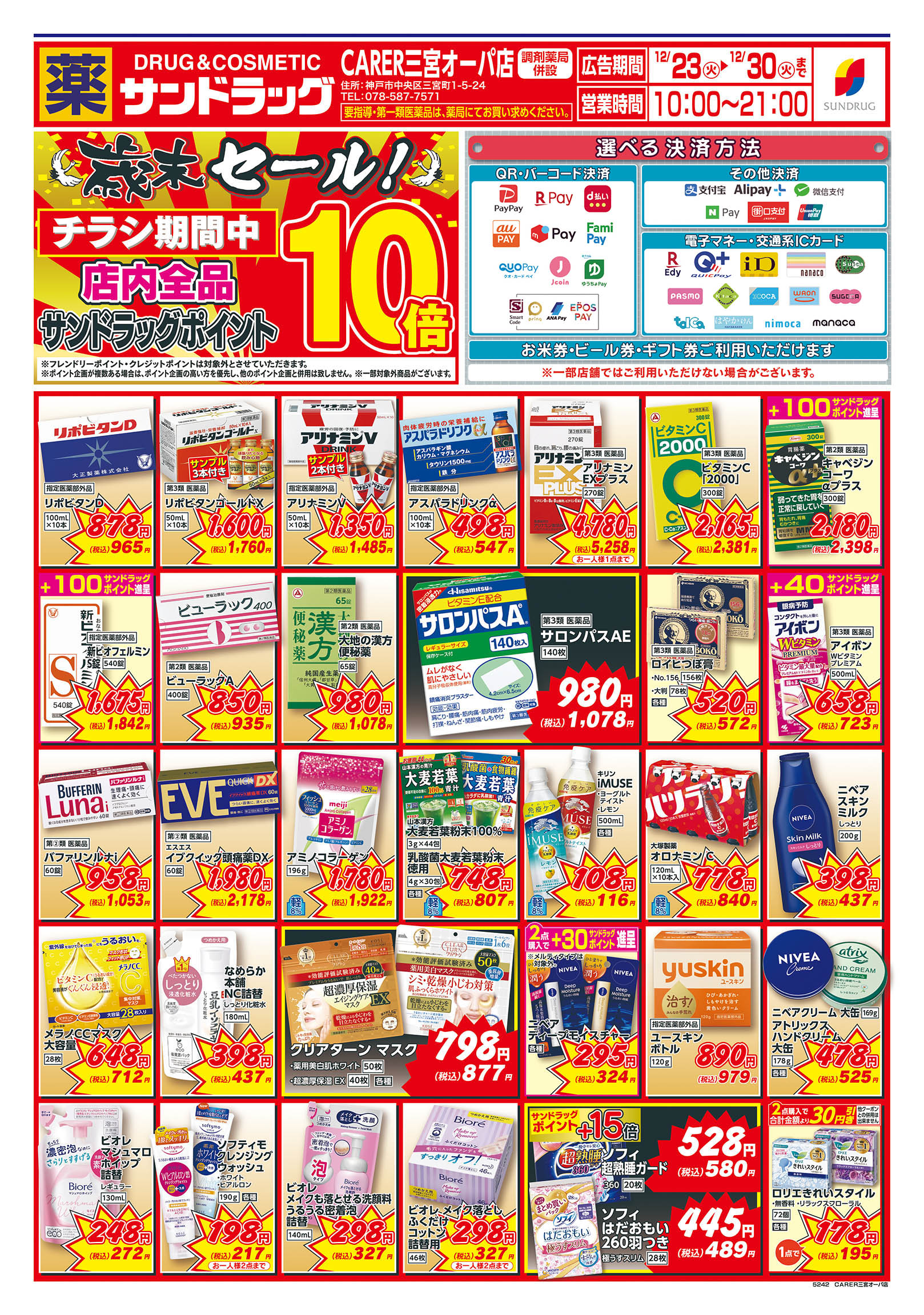 ・第一類医薬品は時間帯によって販売できない場合があります。・『駐車場設置店舗』には、駐車券発行店舗も含まれます。