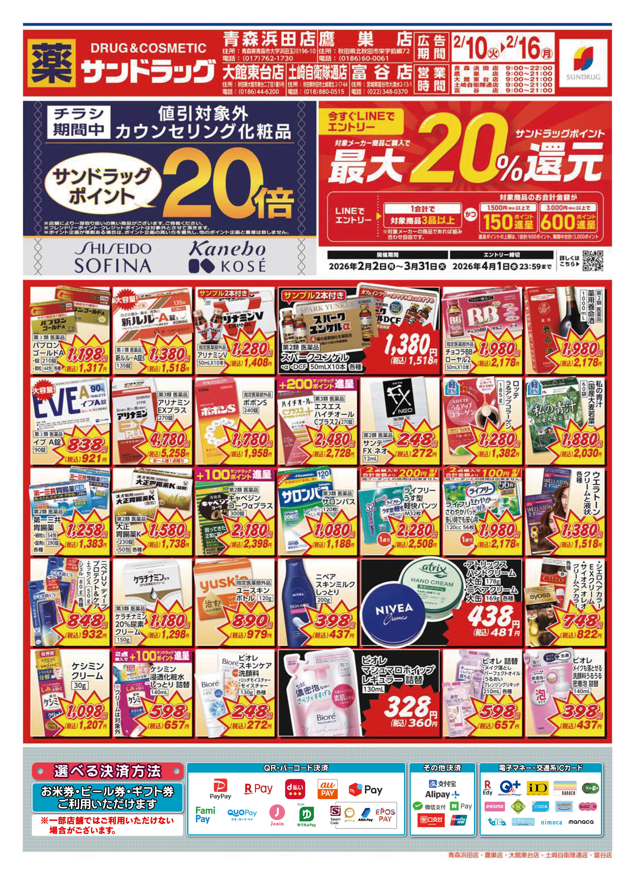 | 店舗でご利用いただける支払方法 |