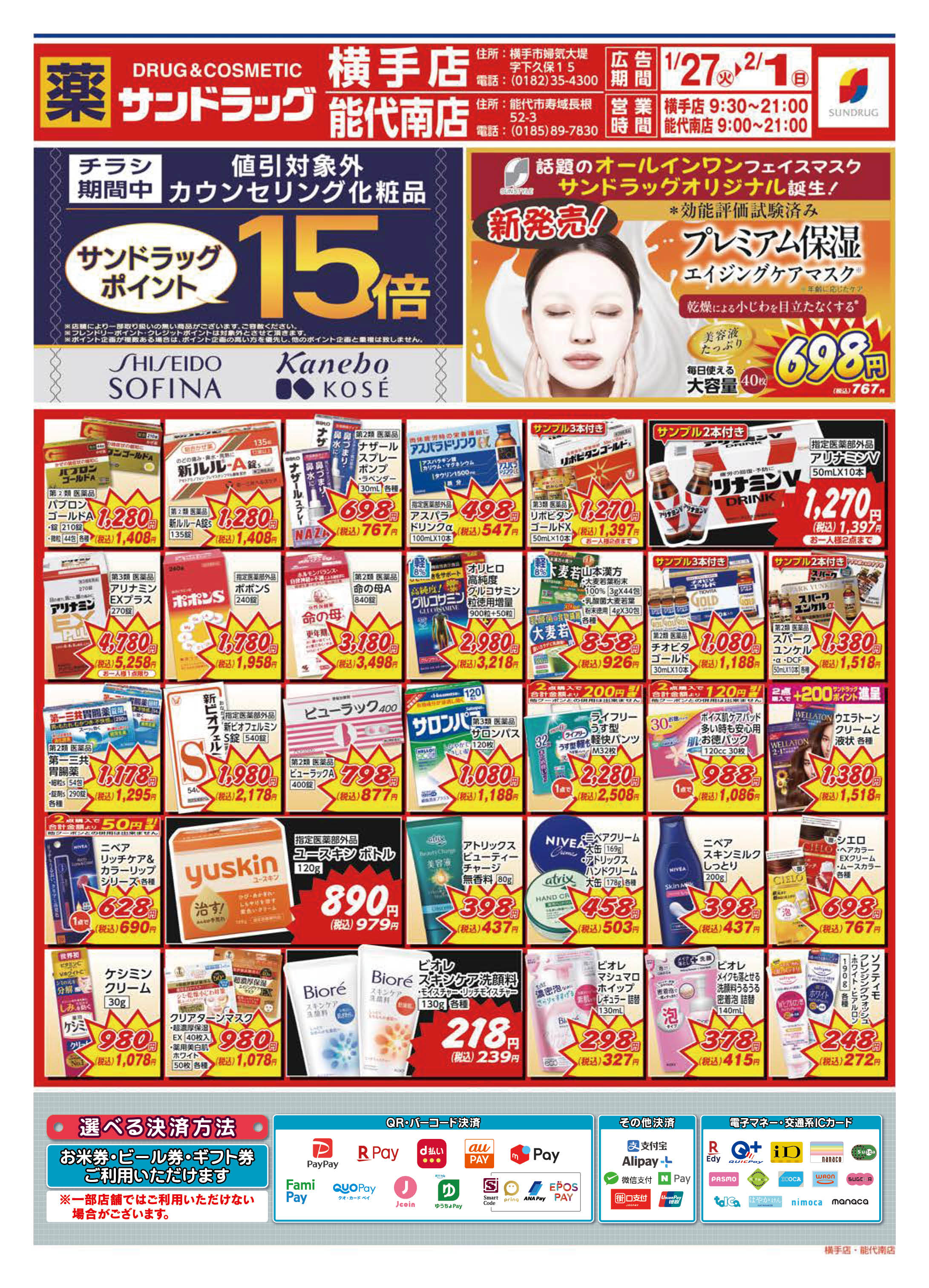 | 店舗でご利用いただける支払方法 |
