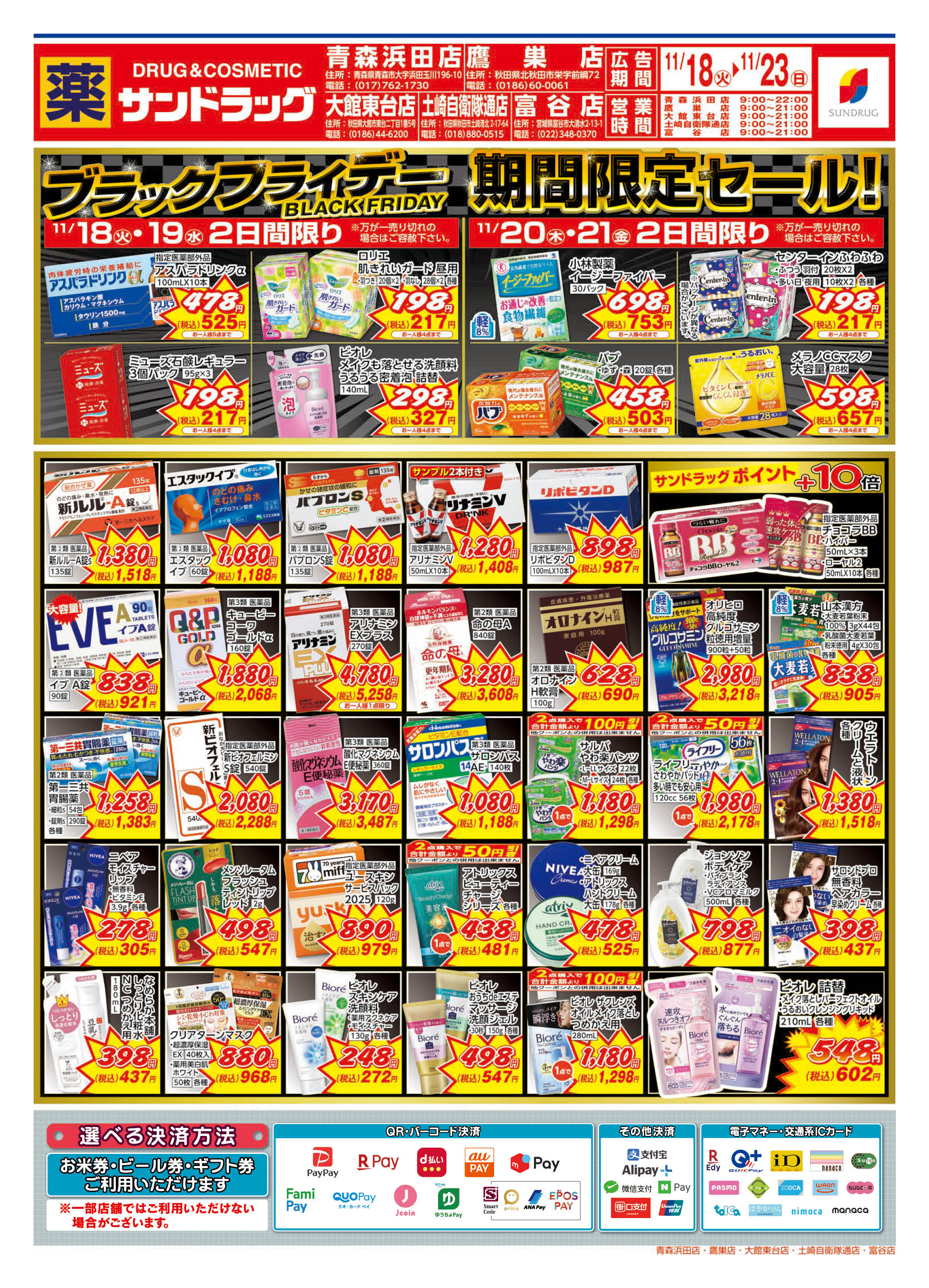 | 店舗でご利用いただける支払方法 |