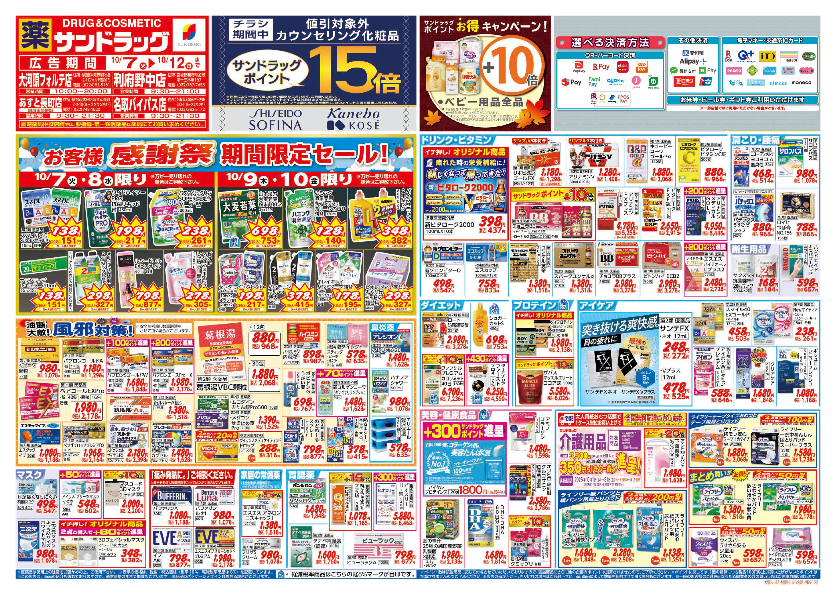 店舗でご利用いただける支払方法 |