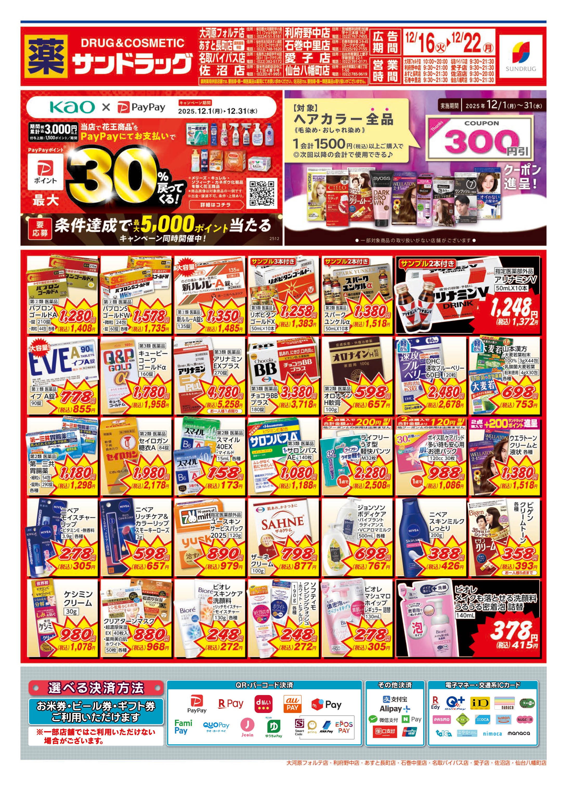 | 店舗でご利用いただける支払方法 |