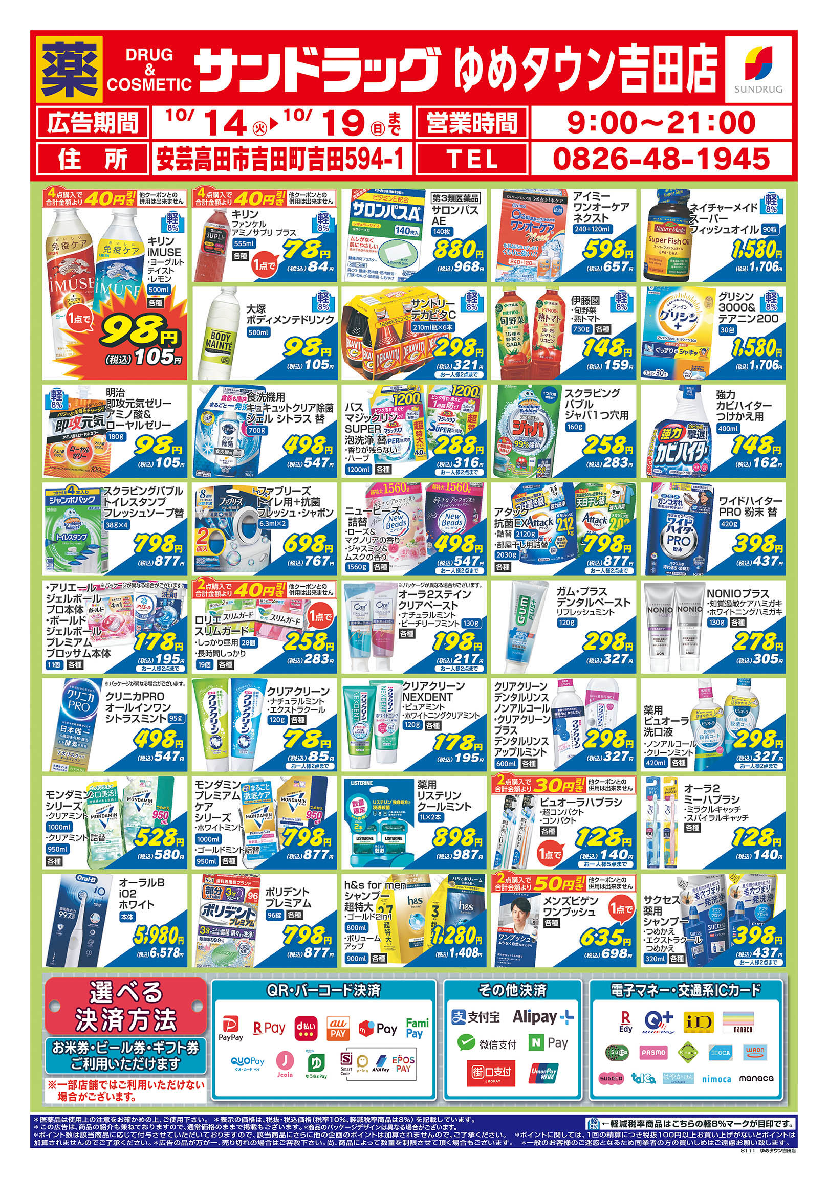・第一類医薬品は時間帯によって販売できない場合があります。・『駐車場設置店舗』には、駐車券発行店舗も含まれます。