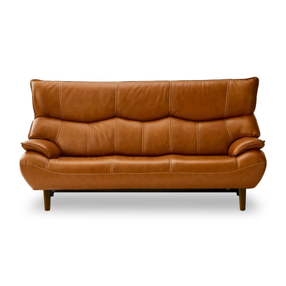 負荷のかかりやすい背もたれ・座面・肘掛けに本革を使用したソファ。背もたれハイバック仕様のため、首や頭部までリラックスできます。背もたれ取り外し式。