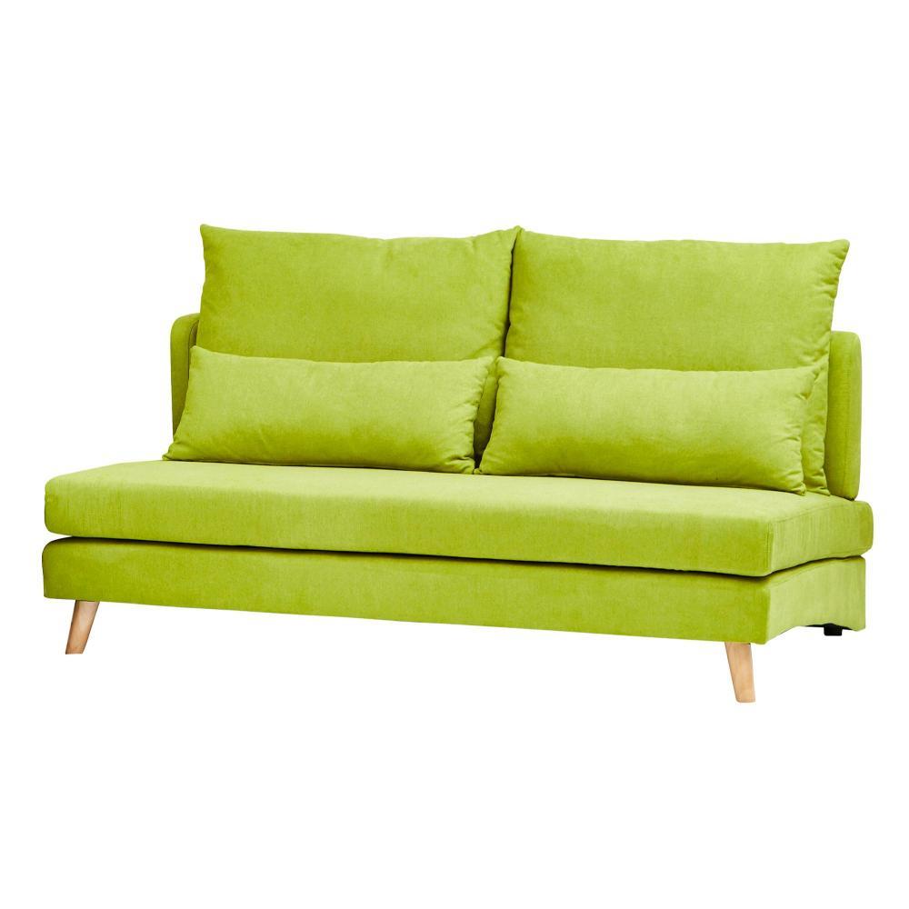 広い奥行きと肘無しであぐらのしやすいソファ。ランバークッション2個付き。