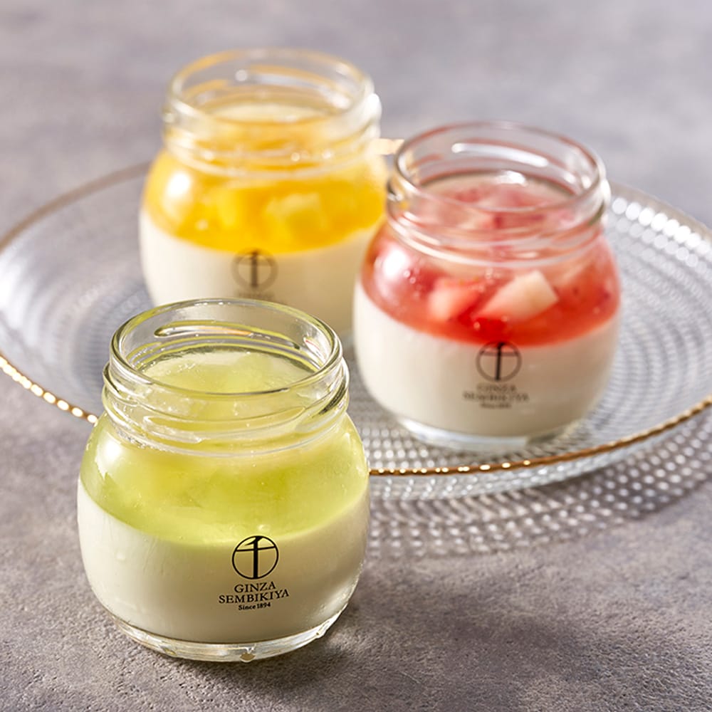 フレッシュな果物を使用した3種類のフルーツゼリーと口当たりなめらかな杏仁豆腐を瓶に閉じ込めました。いちご・マンゴー・メロンの果肉をトッピングした、見た目も楽しい彩り華やかなフルーツ杏仁をお楽しみください。