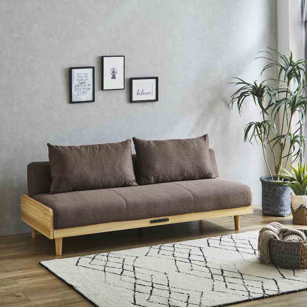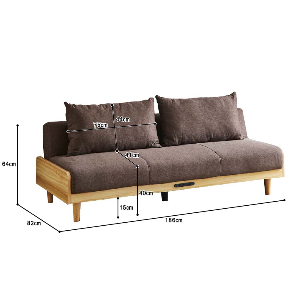 ●2WAYで1台でソファとベッドの2通りの使い方が出来る便利なソファ。●2口コンセント、USBポート付きソファ中央木部の使いやすい位置についております。●座面高:40cm。●脚を外してロータイプでもご利用いただけます。●生産国:中国。