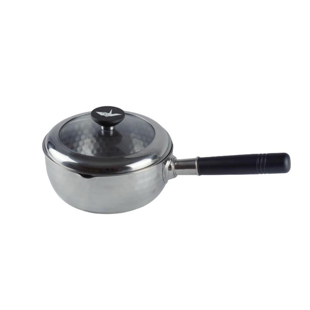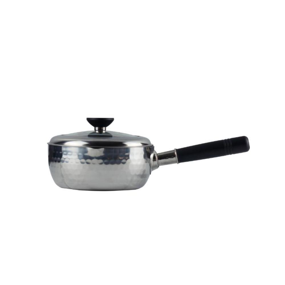 底面はフラットでストレスフリー、IH などの高火力熱源に対応させるため底に凹凸を設けた鍋がありますが、料理をすくう時にお玉が凹凸にぶつかり掬いきれないことも。底面がフラットなのでストレスなく食材を掬い取れます。