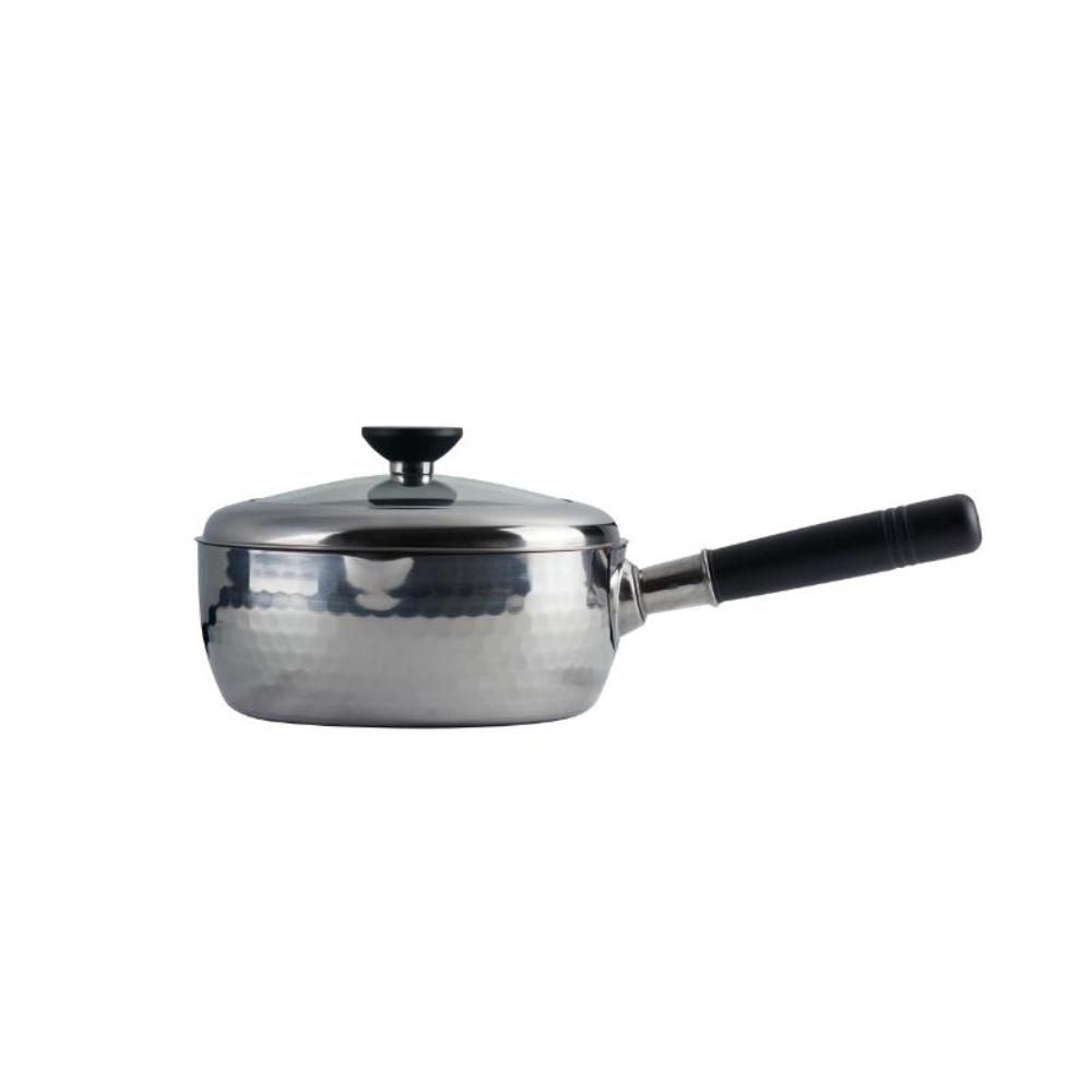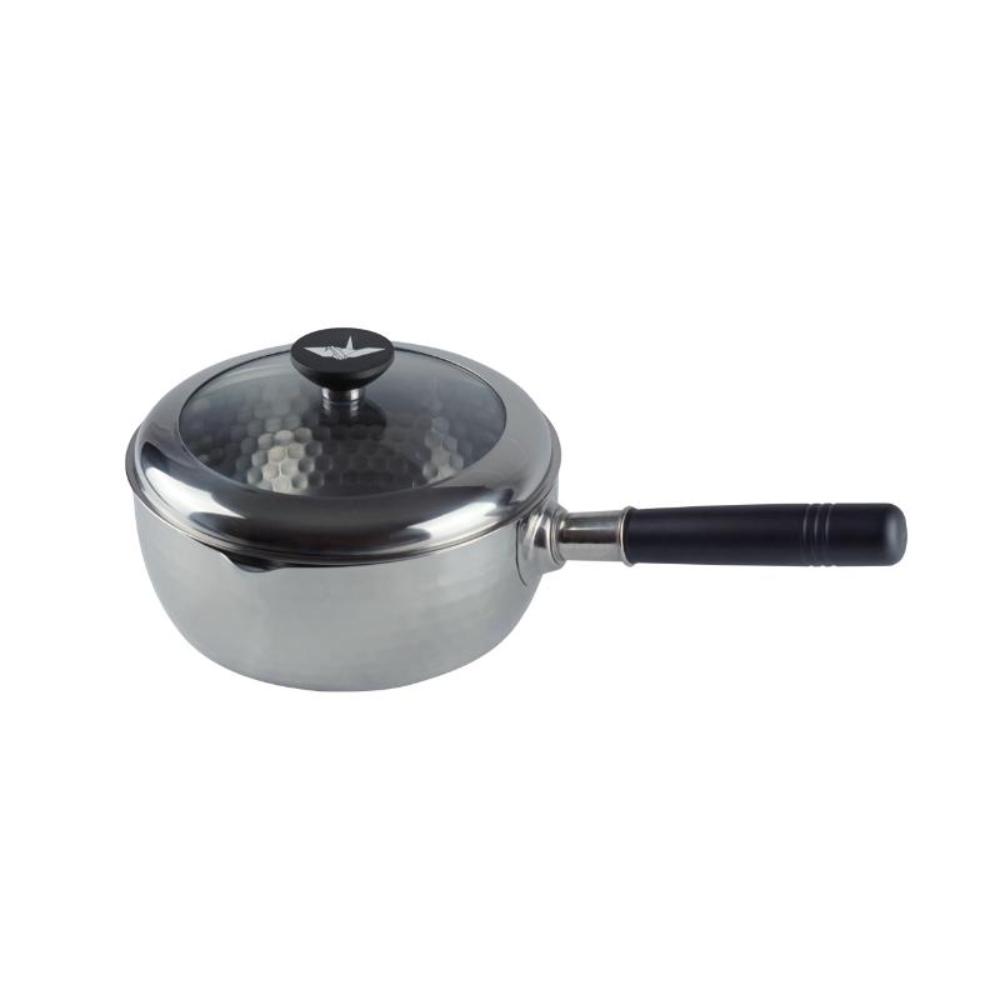 底面はフラットでストレスフリー、IH などの高火力熱源に対応させるため底に凹凸を設けた鍋がありますが、料理をすくう時にお玉が凹凸にぶつかり掬いきれないことも。底面がフラットなのでストレスなく食材を掬い取れます。