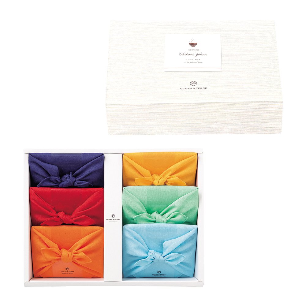炊き込みご飯の素38g(2合用)×6、銀だら1切×1、ずわい蟹13g×1、金目鯛1切×1、帆立2~4個×1、紀州南高梅1粒×1、うなぎの蒲焼き13g×1、三つ葉0.2g×6、白煎りごま1g×6