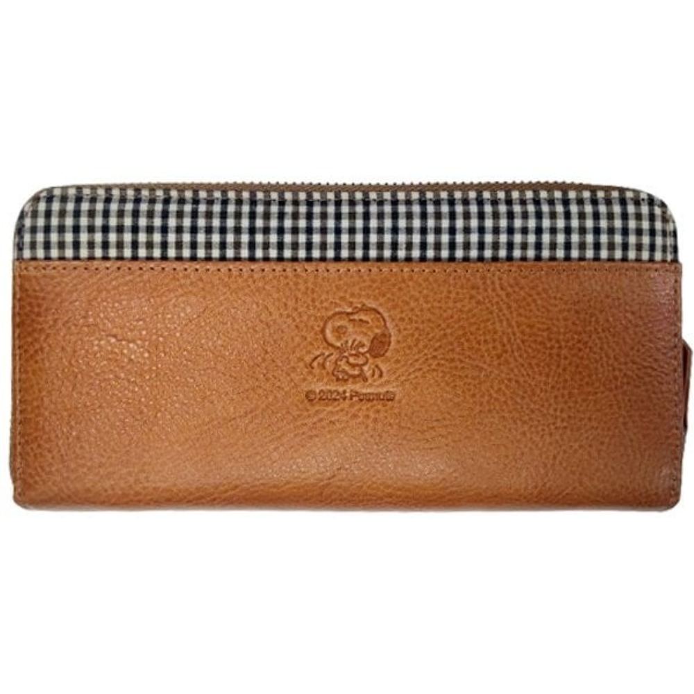 毎日をスヌーピーと一緒に過ごせる!かわいらしいデザインを落とし込んだ、日常で使える大人のための 本格的なレザー雑貨ブランド!スヌーピーとウッドストックがかわいらしくちょこんと座ったイラストが型押しされた表面、裏面にもかわいらしくハグする型押しデザインに、落ち着いた色合いのチェック模様の布地があしらったシンプルでかわいい長財布。使いやすい定番ラウンドファスナータイプです。スッキリとした形状にこだわり、中のファスナーポケットも中身を確認しやすいようL字型のファスナーを採用しました。牛革を使用しているので使いこむほど手に馴染んでいく風合いをお楽しみください。ユニセックスなデザインでギフトにもおすすめです。