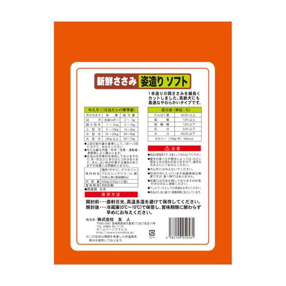 新鮮で良質なササミのみを使用した低脂肪スナックで、犬種を選ばないソフト仕上げにしております。