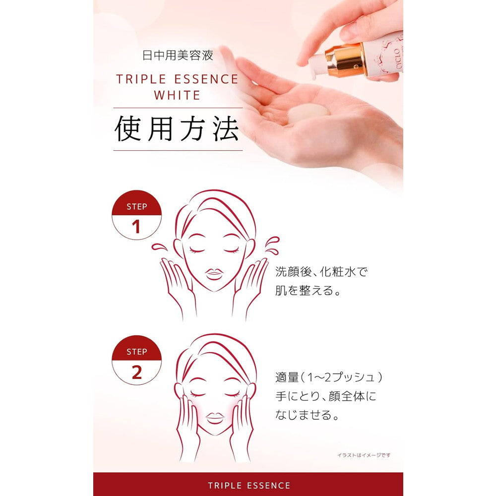 "Triple Essence (White)" is an unprecedented beauty serum that uses three active ingredients and three approaches to tackle the problems of age spots, dullness, and the appearance of aging, and combines UV protection and skin care. .
