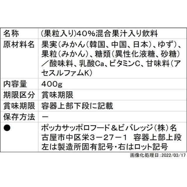 A fruit juice drink containing plenty of crushed mandarin oranges. Made with 40% tangerine juice, it has a strong sweet taste and a crunchy texture, making it a luxurious experience that will make you feel like you are eating the tangerine itself.