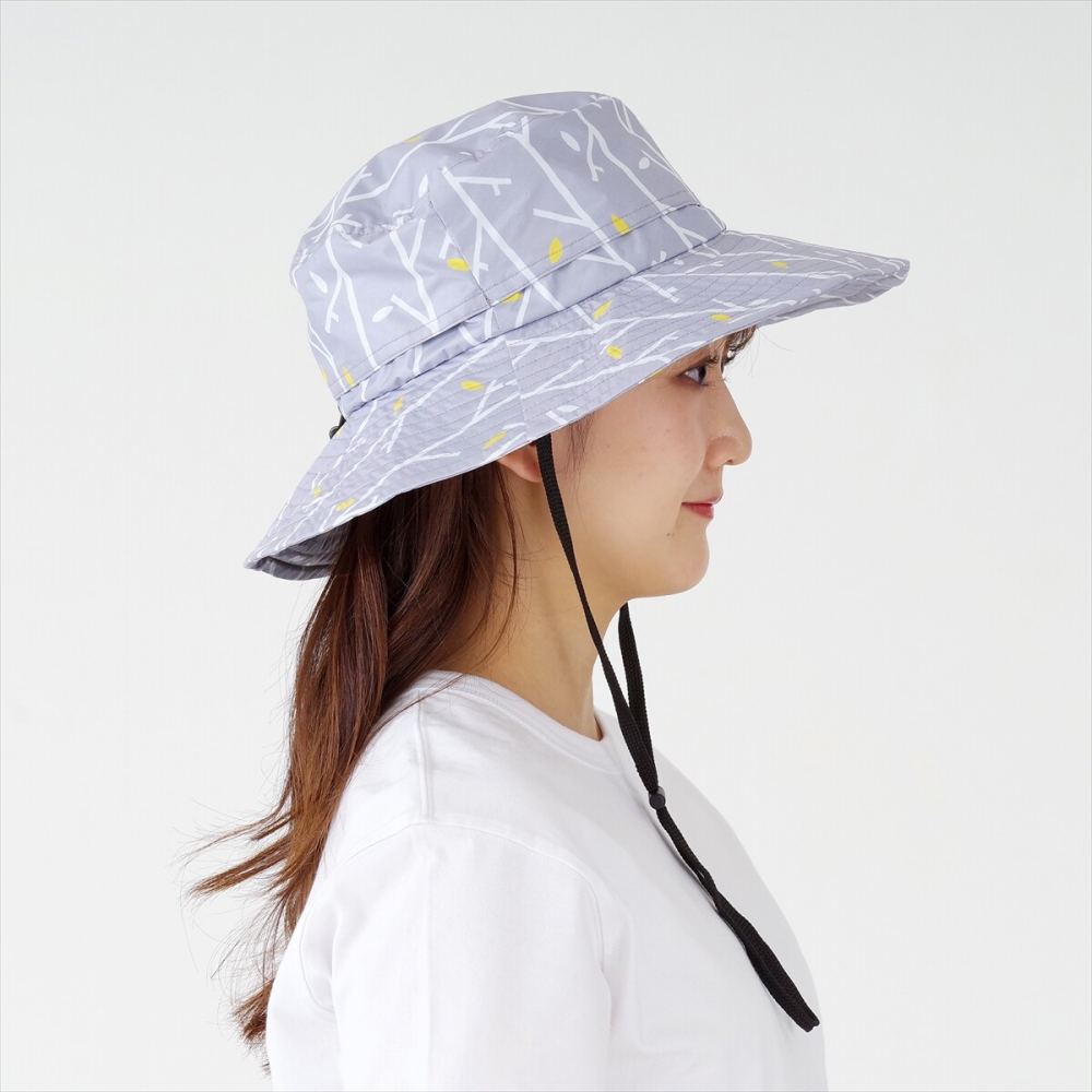 日傘と同じ一級遮光の生地を使用した、日差しから髪や肌を守り突然の雨もカバーする晴雨兼用日傘のような帽子です。紫外線や雨対策として、自転車やスポーツ観戦など傘が使えないシーンでも活躍します。紫外線遮蔽率100%、UPF50、遮光率100%、遮熱性効果で強い一級遮光生地で、日差しや暑さをしっかり遮ります。生地の表側にははっ水加工、裏側にポリウレタン加工をしているのではっ水・防水効果があります。スリット構造と裏メッシュ使いで通気性が高く、保冷剤を入れるポケットが付いているので熱中症対策にも最適です。ツバの周りに入ったワイヤーでツバの形をキープしてくれます。頭周りはゴムで調整可能なので男女問わずお使いいただけます。使わない時はカラビナ付きのポーチに入れておけます。木や草花モチーフの近くにはさまざまな森の動物が描かれ、静かな森の中を覗き見ているかのようです。ベース色はブラックで、落ち着いた色味で構成されているので、アウトドアや街中でもナチュラルに馴染みます。