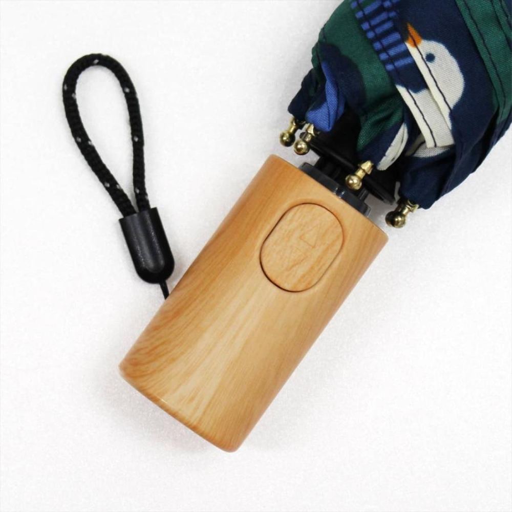 深い森の木々の中に白いとりが隠れている、騙し絵のようなデザインです。木々のグリーンととりのホワイトのコントラストが鮮やかで、とりのさえずりが聞こえてきそうな楽しい傘になりました。ケースやベルト部分のブランドネームがモダンでスタイリッシュです。ハンドル部分のボタンをワンプッシュで自動に開閉する自動開閉傘なので、片手が塞がっている時や雨の日の車の乗降時に便利です。手を離しても戻ることなくシャフトの伸縮が止まるので、安全に使うことが出来ます。ハンドル部分の木目プリントが、ナチュラルな佇まいです。親骨58cmサイズは、男性にも女性にも使いやすいサイズ感で、年齢性別問わずお使い頂けます。紫外線防止加工を施しているので、遮蔽率が全色90%以上あり、「晴雨兼用傘」として雨の日も晴れの日もオールシーズンお使いいただけます。