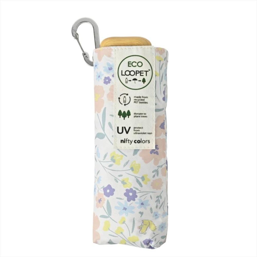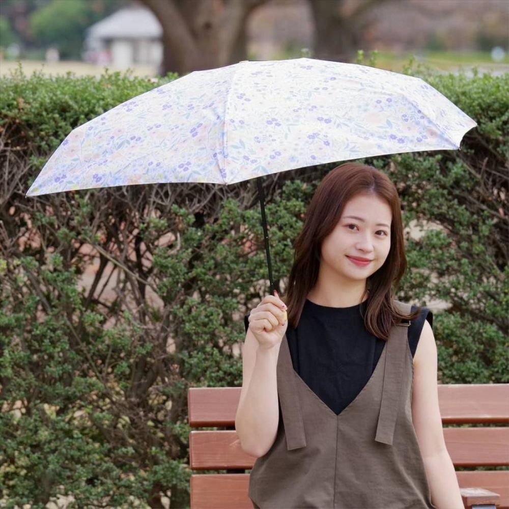 野原をイメージした北欧風の草花のデザイン。優しいパステルカラーでナチュラルな雰囲気です。よく見るといろんな動物が隠れているので探してみてください。ケースやベルト部分のブランドネームがモダンでスタイリッシュです。親骨が5段階に伸縮し、フラットに折りたためる骨構造なので、コンパクトになり持ち運びに便利です。 ハンドル部分の木目プリントが、ナチュラルな印象です。 親骨55cmサイズは、男性にも女性にも使いやすいサイズ感で、年齢性別問わずお使いいただけます。 紫外線防止加工を施しているので、遮蔽率が90%以上あり、「晴雨兼用傘」として雨の日も晴れの日もオールシーズンお使いいただけます。 バッグやフックに付けやすいカラビナもポイントです。