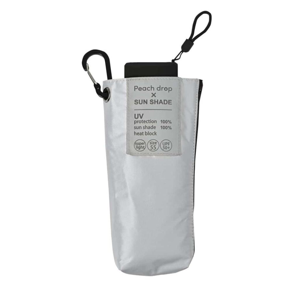 水滴が玉のように転がり落ちる超はっ水「Peah drop」に、遮光率100%の一級遮光機能をプラスした晴雨兼用日傘が加わりました。紫外線遮蔽率100%、UPF50+、遮光率100%、遮熱性効果で雨だけでなく、強い日差しや暑さもしっかり遮ります。コンパクトで軽量なのに嬉しい親骨55cmと大きめサイズ。軽さのの理由は親骨に軽く丈夫なカーボンを使用しているから。たたんだ時の高さは18cmなので小さいバッグにも入ります。下までしっかり開くカラビナ付きのファスナーケースは、入れやすさと携帯性を重視しています。指や爪をはさみにくい「安全ろくろ(ストッパー)」を使用しているので、ボタン部分を押して開閉でき安心してお使いいただけます。※記載の紫外線遮蔽(UVカット)率・UPF値・遮光率・耐水圧値は生地の状態での測定値であり、傘本体の性能を保証する数値ではございません。また、生地に施された縫製などのUV加工生地以外の部分も同様です。