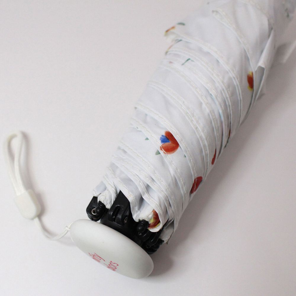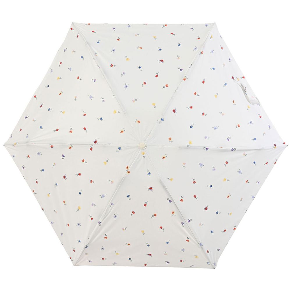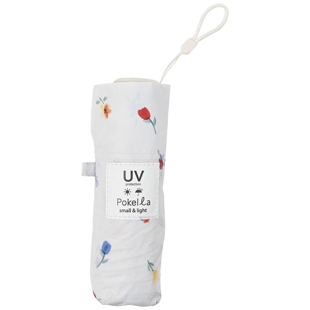 軽くて小さい、ポケットサイズの可愛い「Pokellaポケラ」は高さ16cm、重さ約140gの小さいサイズ感に、紫外線遮蔽率98%以上、耐水圧5,000mm以上の機能を兼ね備えた晴雨兼用折りたたみ傘です。手元部分をカチッと傘骨に押し込むとしっかりロックされ、中棒が伸びてくるのを防ぎます。指や爪をはさみにくい「安全ろくろ(ストッパー)」を使用しているので、ボタン部分を押して開閉でき安心してお使いいただけます。小さめのバッグやポケットにも入るコンパクトさが魅力です。紫外線遮蔽率:99.0%カラフルな水彩タッチの花柄が傘一面に広がった、雨の日も明るい気分にさせてくれるデザインです。カラフルでも小花柄なのでコーディネートしやすく、カジュアルにもフェミニンにも合わせていただけます。