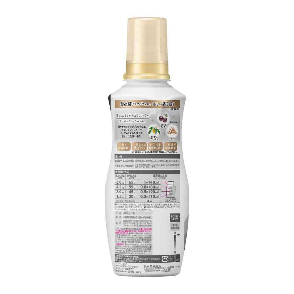界面活性剤(エステル型ジアルキルアンモニウム塩、ポリオキシエチレンアルキルエーテル)、安定化剤、香料