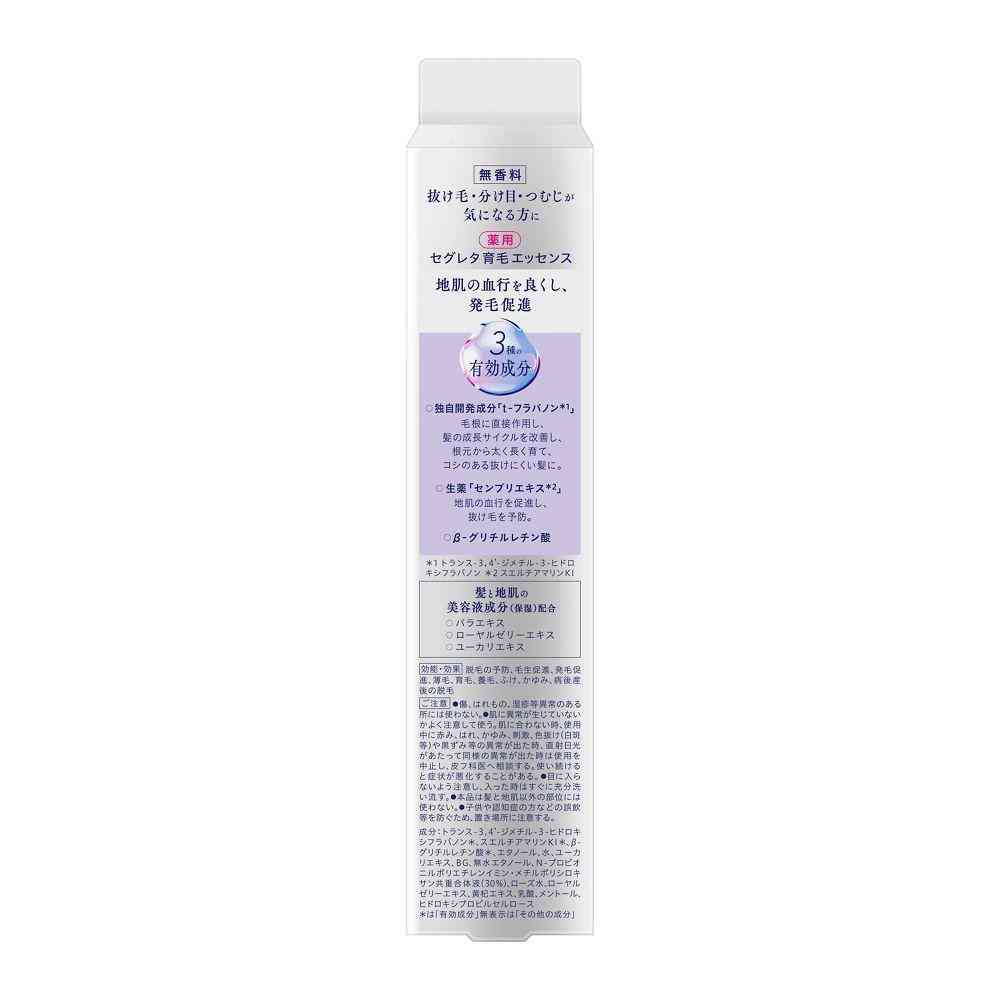 セグレタ育毛エッセンスは、t-フラバノンが成長サイクルを徐々に改善して、抜けにくい太く長い髪に育てます。