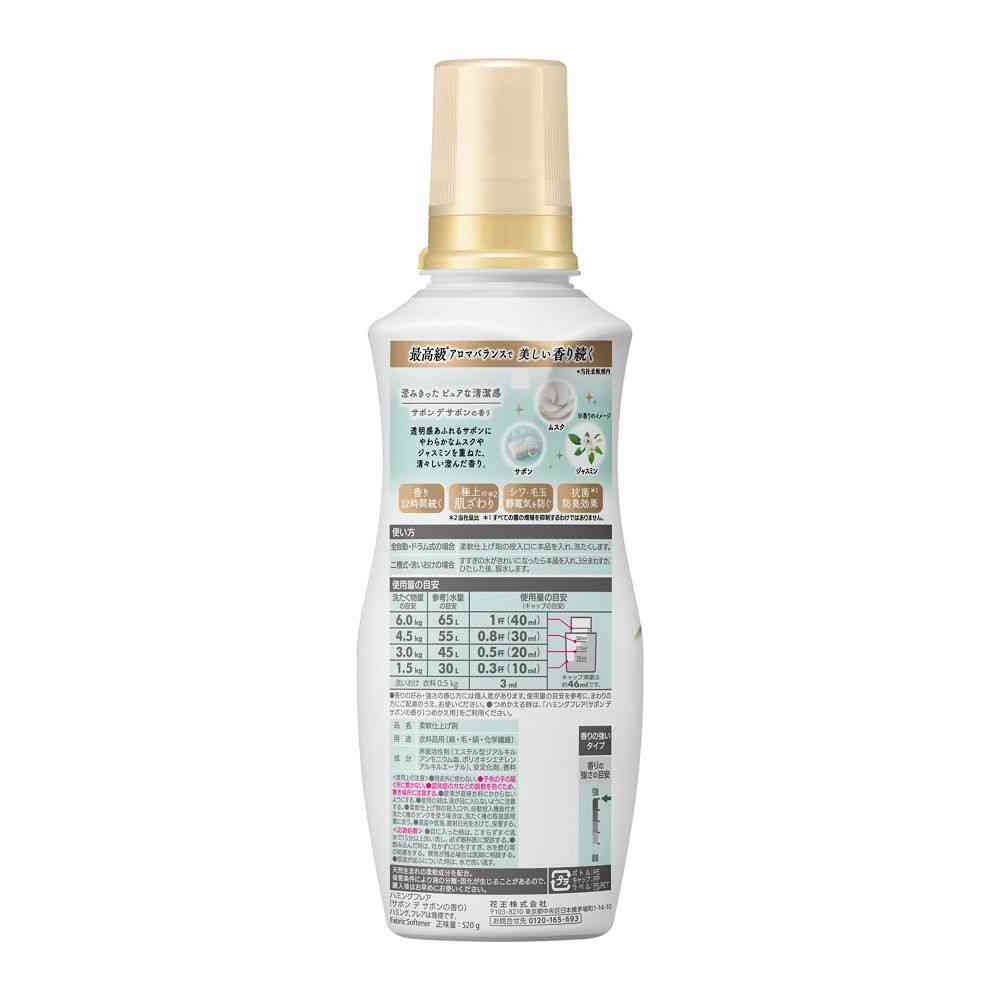 界面活性剤(エステル型ジアルキルアンモニウム塩、ポリオキシエチレンアルキルエーテル)、安定化剤、香料
