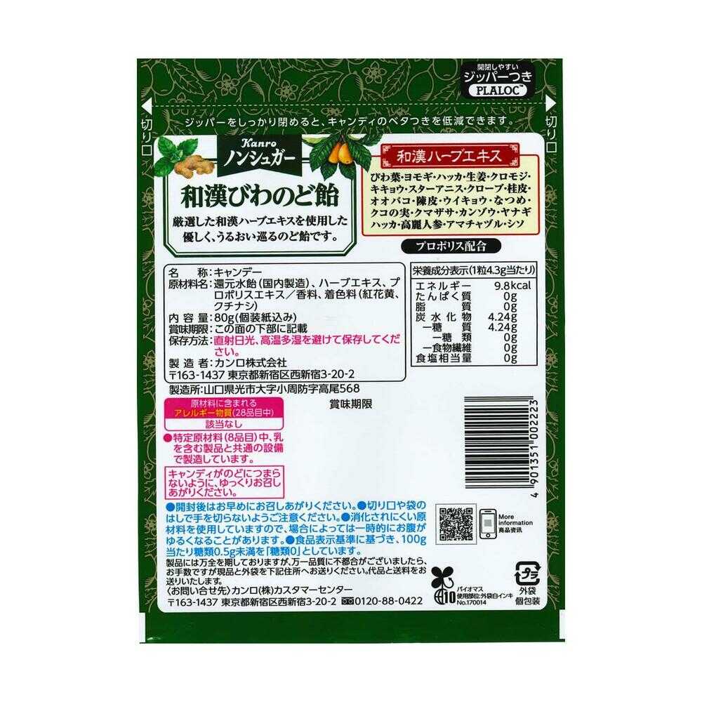 東洋で昔からのどにいいといわれるびわの葉と、和漢ハーブエキスを配合したのどに優しく、うるおい巡るのど飴。