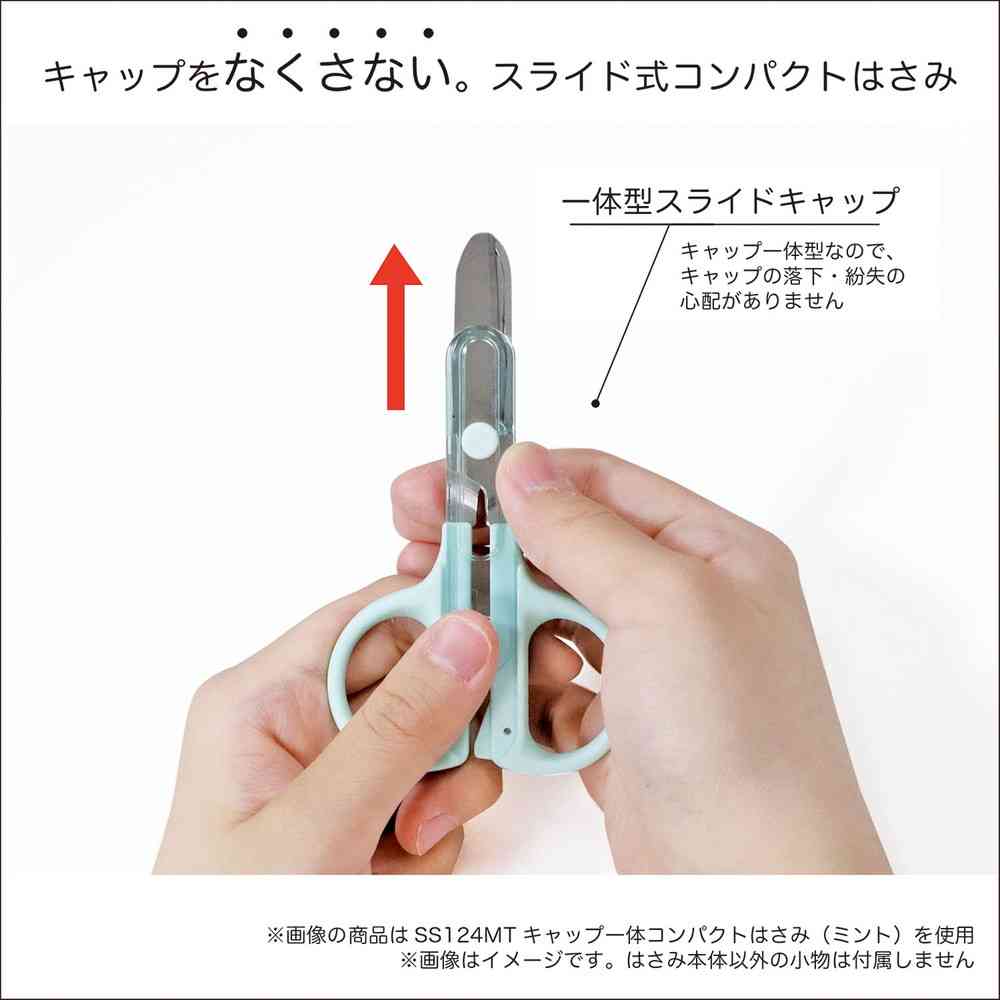 ハサミ本体と一体型のスライドキャップを採用することでキャップの紛失を防止します。
