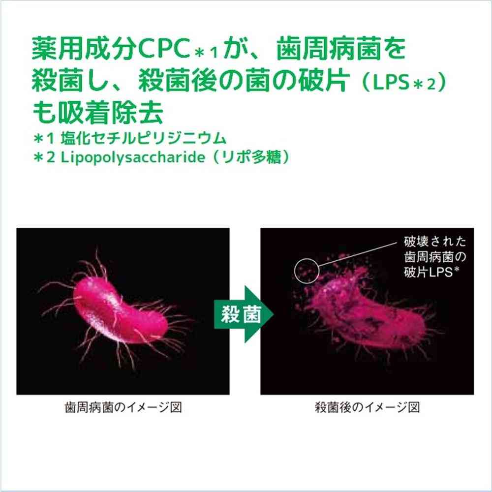 Effectively prevents periodontal disease and bad breath by sterilizing periodontal disease bacteria and firmly adsorbing and removing bacterial debris (LPS) after sterilization.