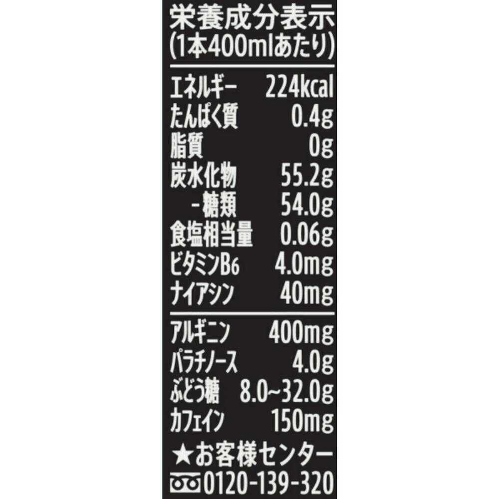 糖類(砂糖(国内製造)、ぶどう糖、果糖ぶどう糖液糖)、パラチノース、炭酸、酸味料、アルギニン、カラメル色素、香料、カフェイン、保存料(安息香酸Na)、ナイアシンアミド、塩化K、ビタミンB6