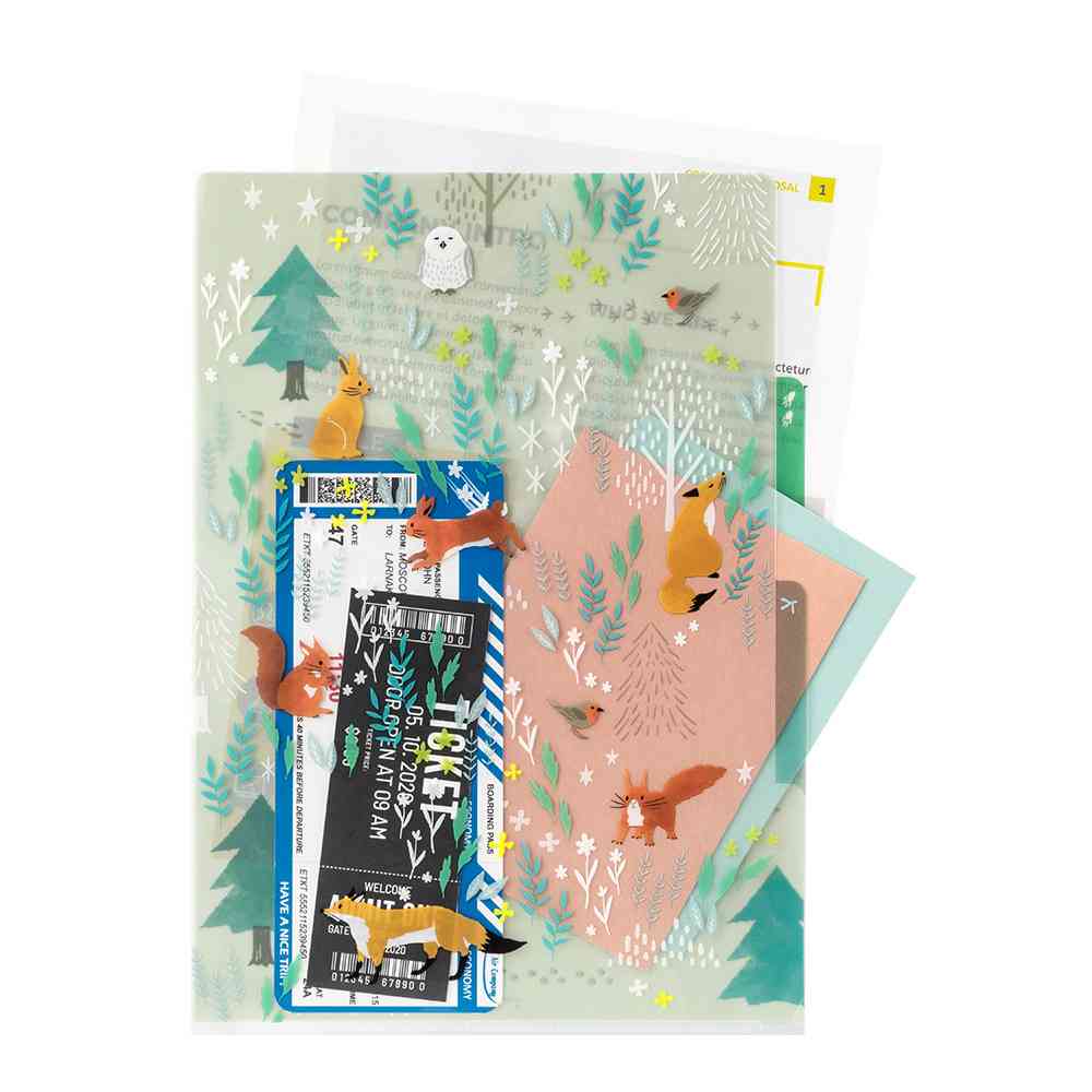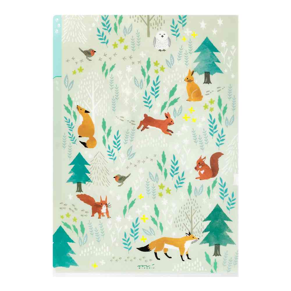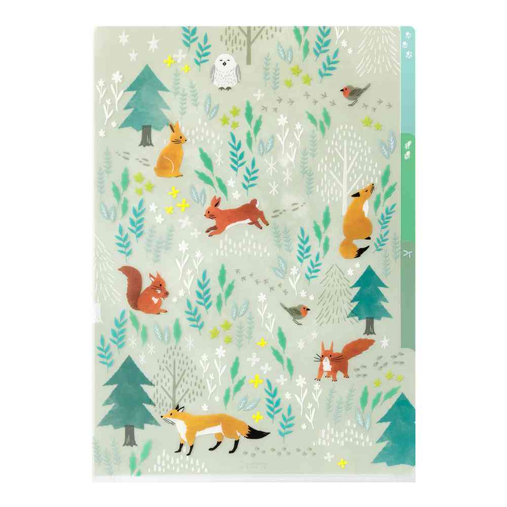 北欧の森の中のモチーフに合わせて、かわいい動物たちを手書き風のイラストで仕上げたデザインです。